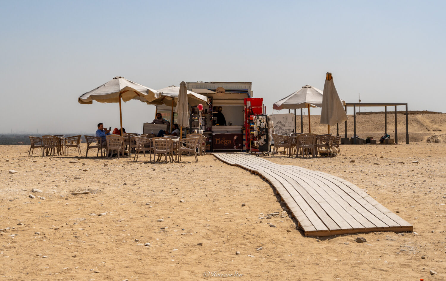 入口城门对面的黄土地上有个咖啡厅。燥热的风扬起的沙尘中,或许还有少量的木乃伊粉吧?在这里喝咖啡,说不定还可以养颜。