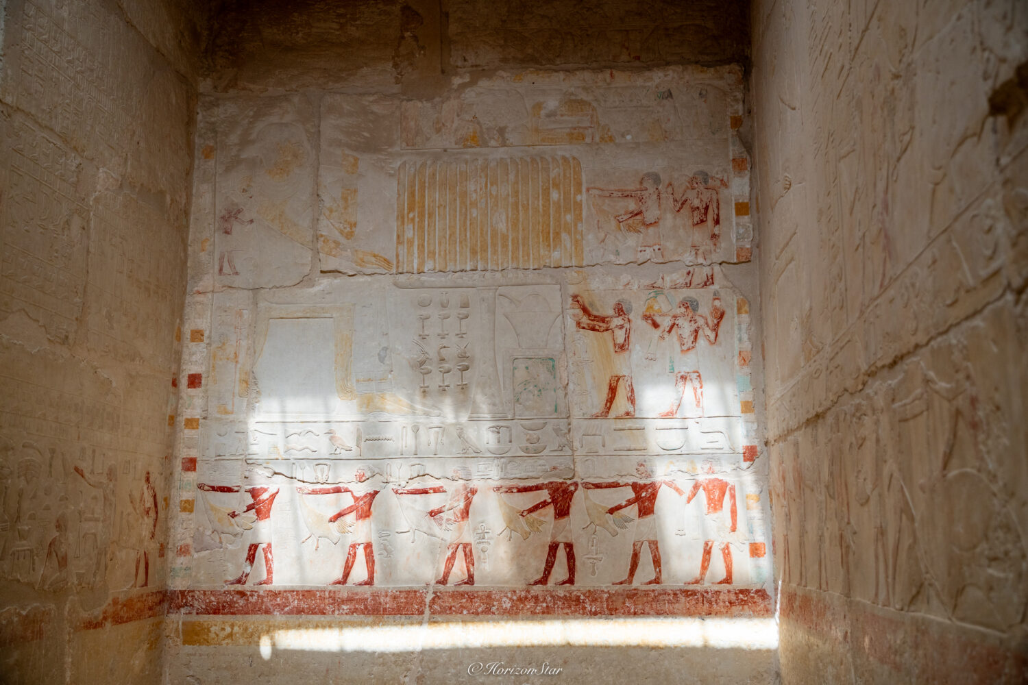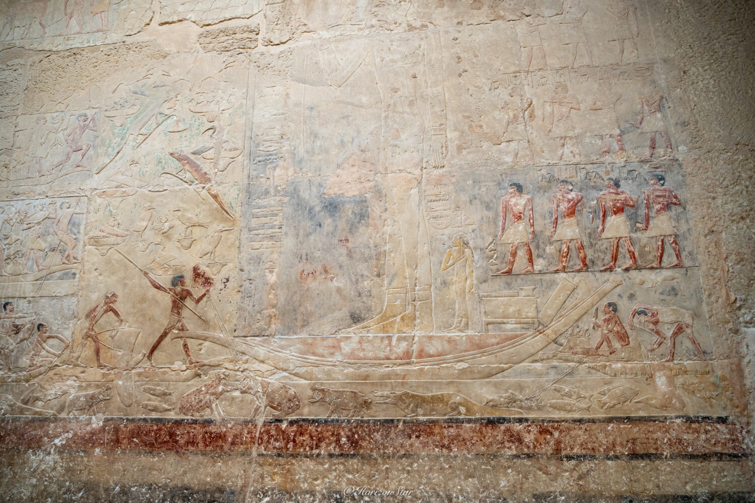 里面的壁画竟然异常的精美,画着她每年的收入,上供的人群,尼罗河,河里的生物,等等。有些地方还有鲜艳的色彩