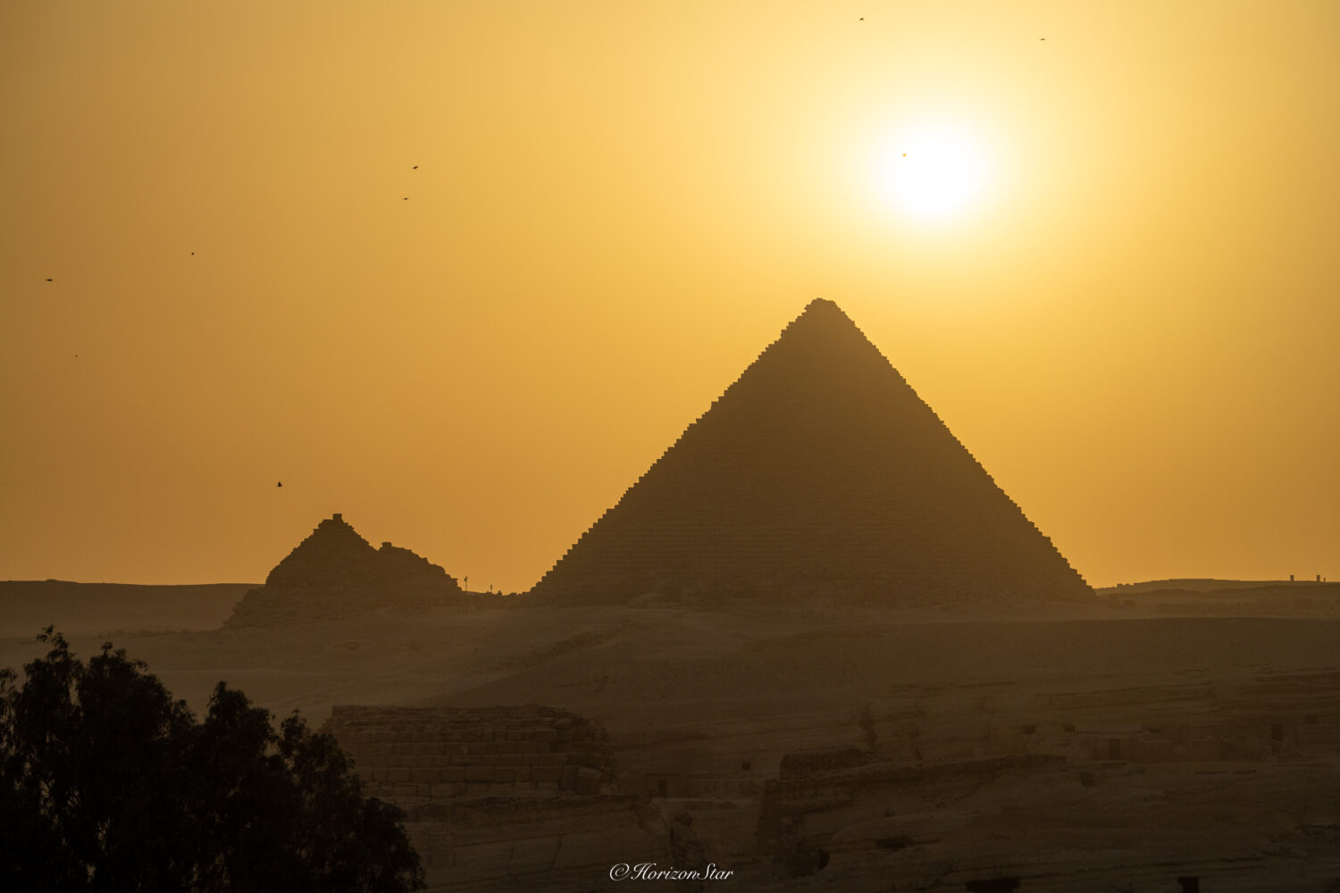 晚餐的时候,如约的看到了金乌从金字塔旁边坠落。