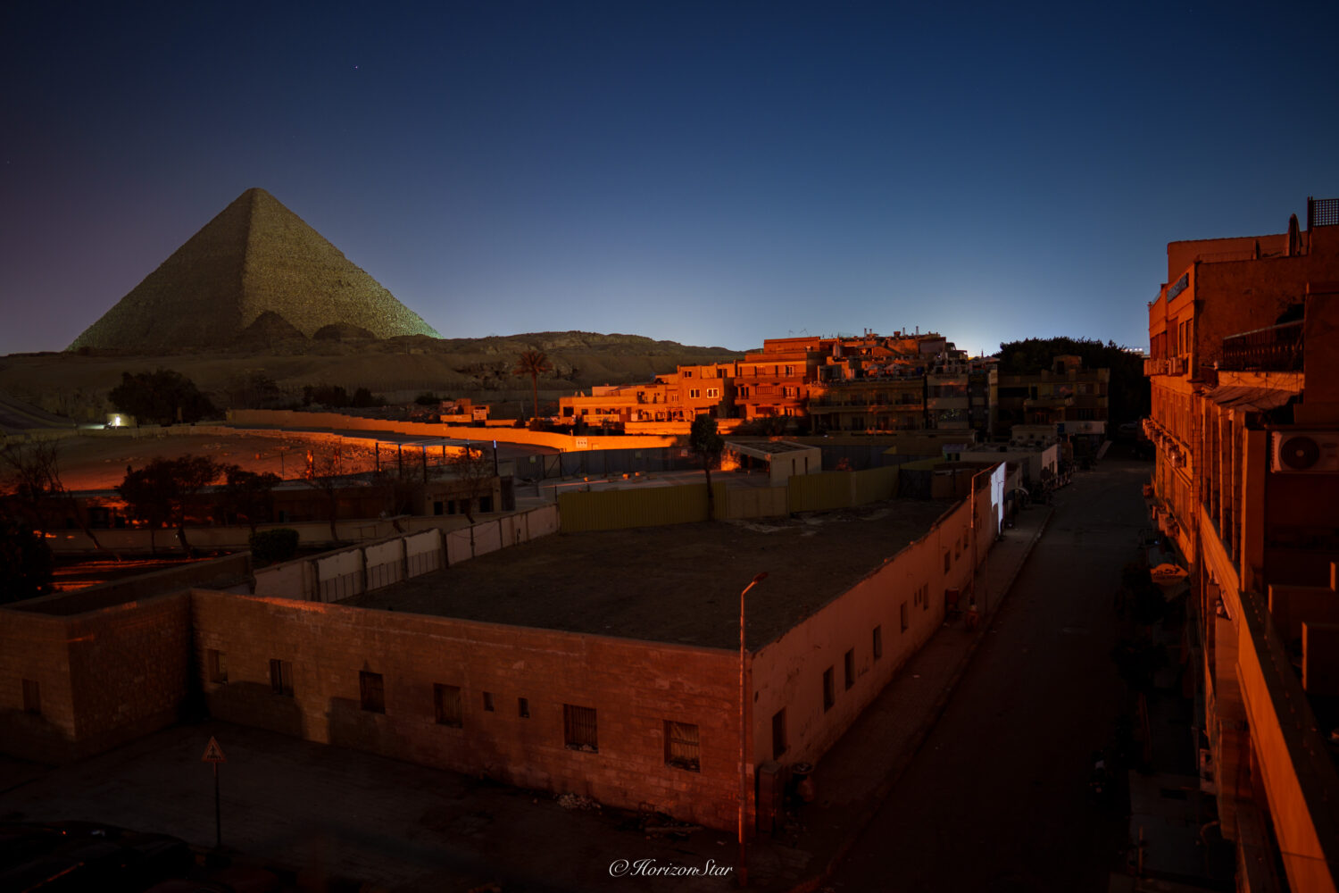 晚上12点,停电了!赶紧出来拍没有光污染的金字塔。这是不可能的了。