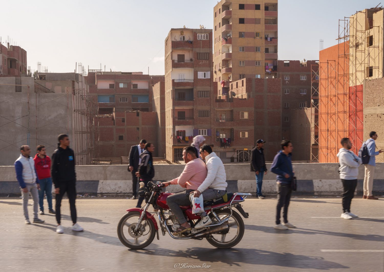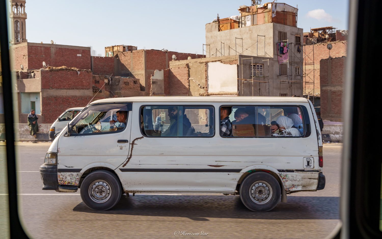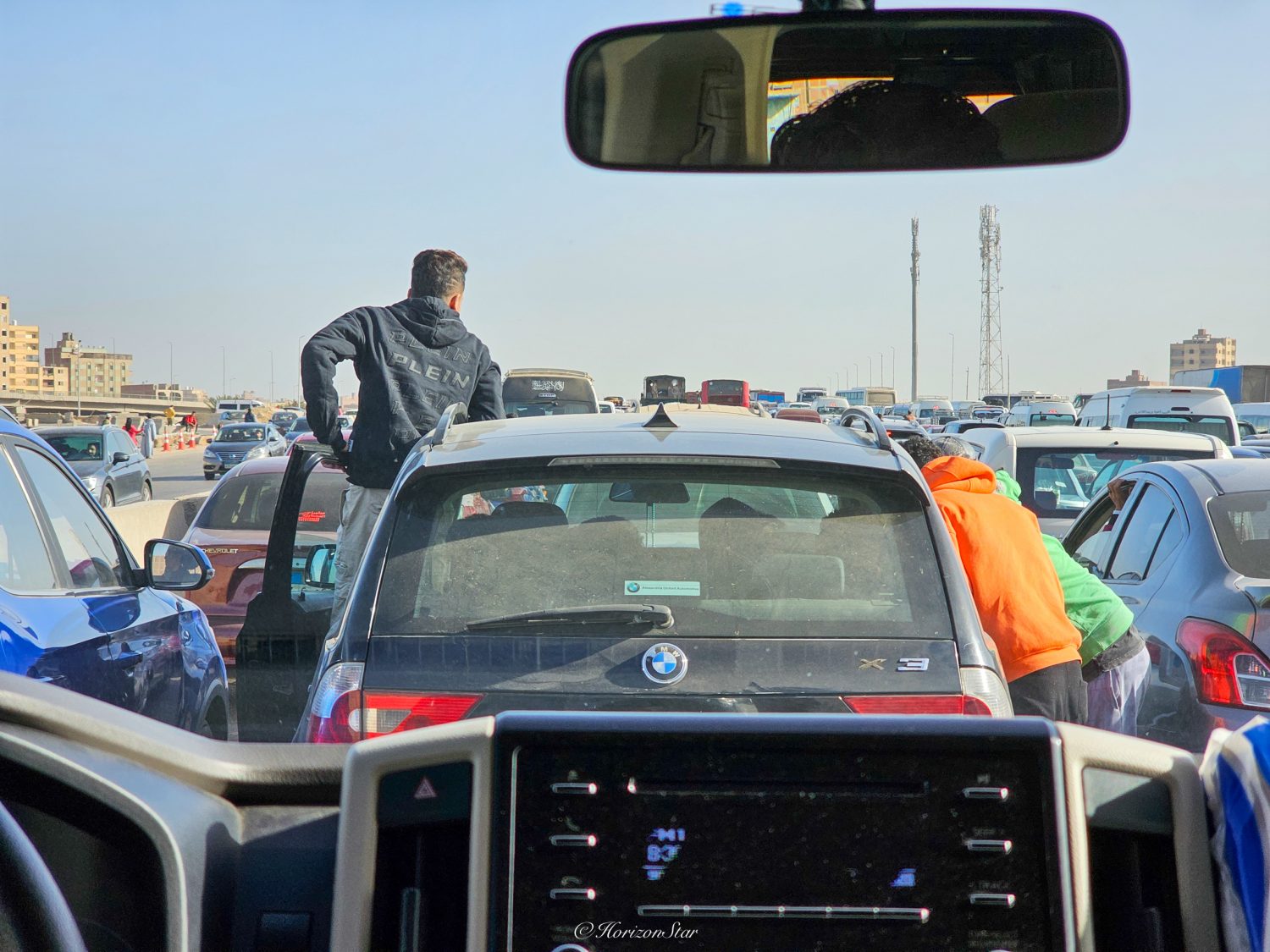 对面方向有辆小红车,快速的在高速倒车几百米,然后垂直插到对面的和我们同向的车流。问题是高速对面为什么会有和我们同向的车流。反正埃及的交通和金字塔一样扑朔迷离。