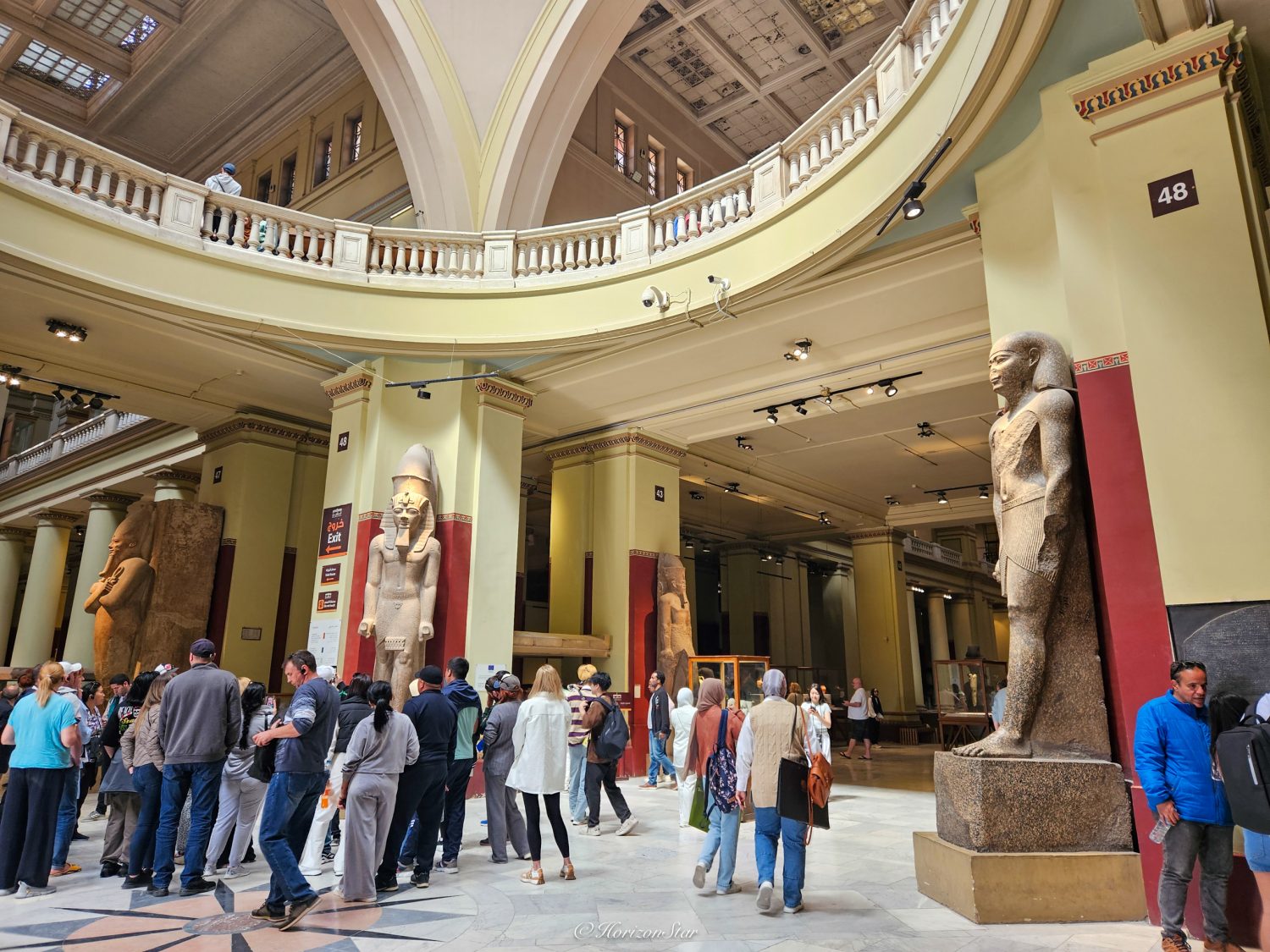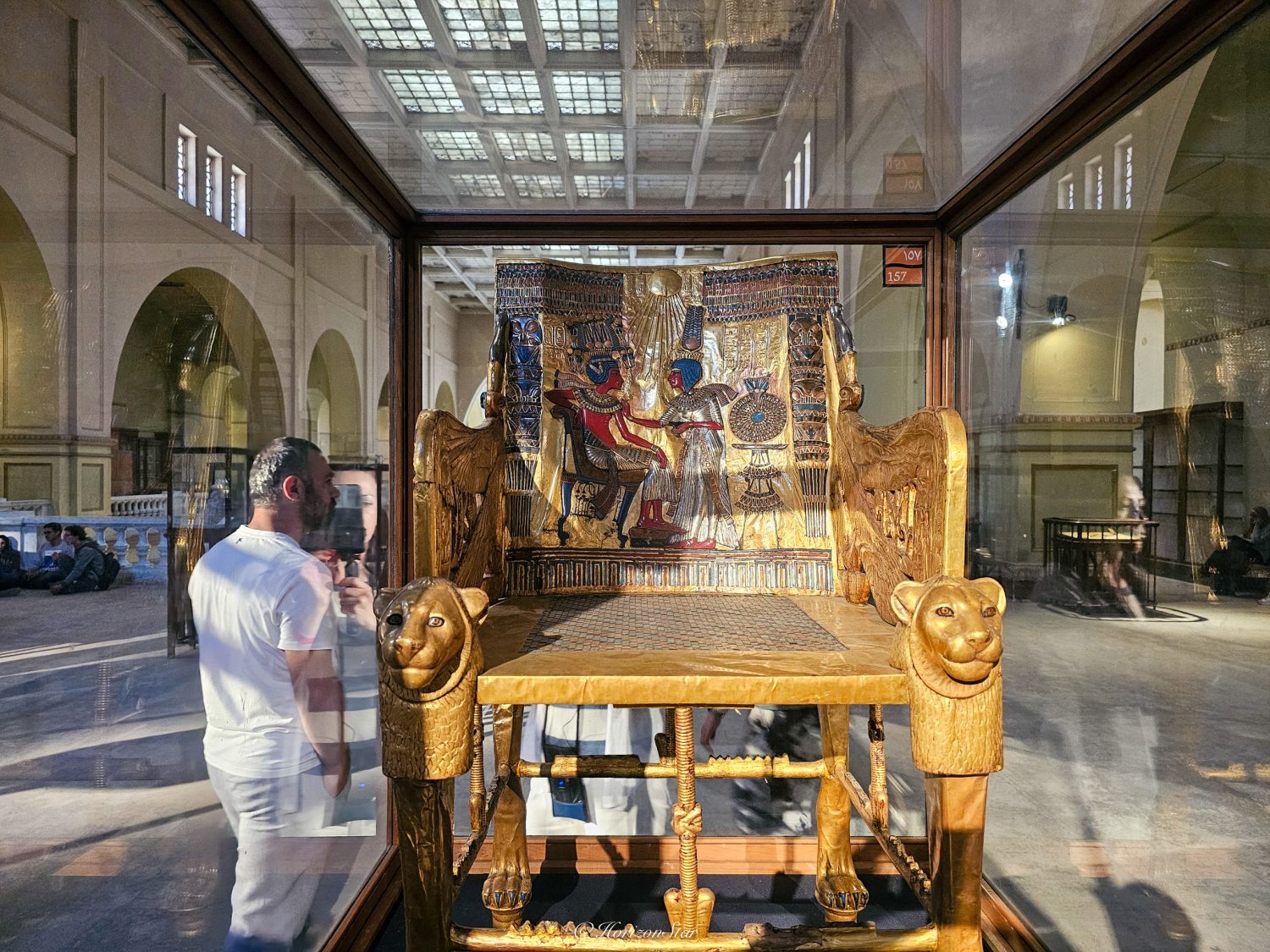 到了埃及博物馆。作为最大的埃及文物的博物馆,这座建造于1901年的老楼,由法国和德国设计师所设计,意大利人建筑公司建造,意大利运输公司把文物运进来。现在已经承受不了自己的12万件馆藏。之前木乃伊们都已经住上了集体宿舍,一层摞一层,不得不把大部分的木乃伊搬去了埃及文化博物馆。2002年,埃及决定兴建一个新的大型博物馆,来取代这座100多年的建筑。并命名这座未来的博物馆为Grand Egyptian Museum(GEM)。 结果直到2018年才开始动工。预期2020年完成,可以向公众开放,结果一年拖一年,拖到了2025年。2025年中的说法是年末会全部开放。2024年3月,很多馆藏早已转移去了GEM,但是它又没有全部开放。