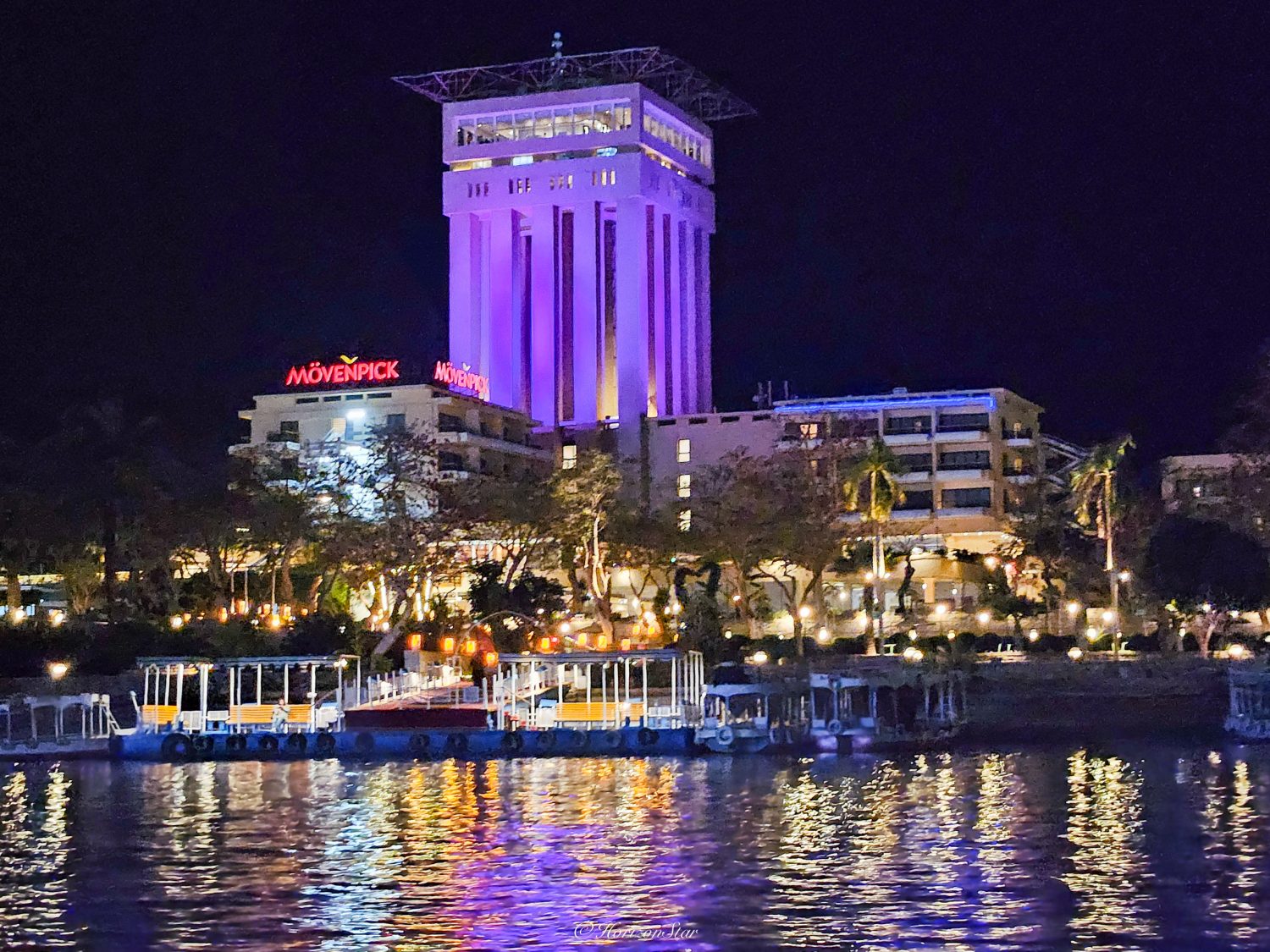 阿斯旺的酒店旅行社选的是Movenpick,在尼罗河的湖心岛建的。到了码头导游让我们下车,改坐船,开到湖心岛。