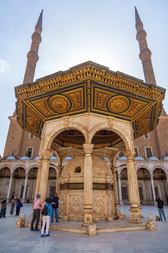 再回来看这个钟楼。为了感谢埃及的赠送,法国回赠给了埃及这个大钟。阿里在建清真寺的时候,就做了个钟楼,把它放上去。但是这个大钟最有名的不在于它是埃及第一块公共钟表,而是它一直是坏的。装上去没两个月,钟表不跑了。后来几次三番的修,都只跑了几天又停摆,明显的风水不和啊。一直到2020年末,法国的钟表匠到开罗检查了俩月,给出一份报告,说哪里坏了应该怎么修。第二年,卢克索的专家过来把它修好了,更安装上了自动上弦功能。埃及旅游文物局发布公告,骄傲的说已经把它修好了。