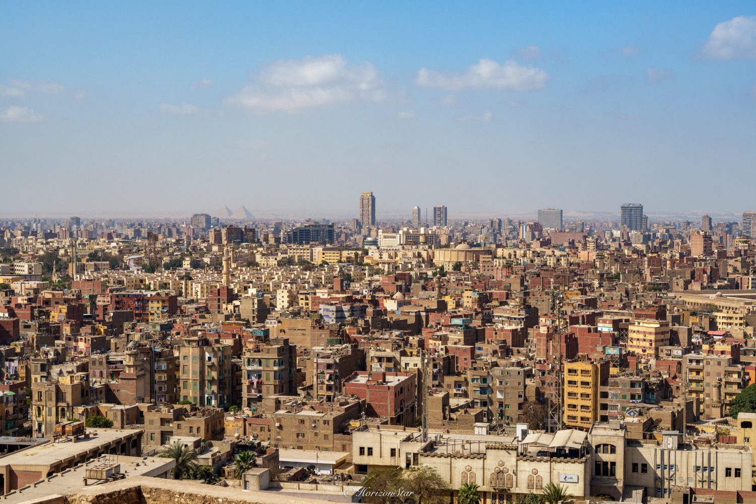 离开大殿,到了城堡的外墙,俯瞰开罗的全景。今天天气晴好,金字塔在远处清晰可辨。法老们的丰碑,成了子孙们的摇钱树。在信仰太阳神的祖辈面前,他们却以修建了上千座清真寺,被称作千寺之城而自豪。