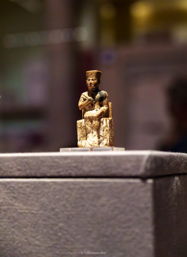 放一张二楼公共区域他的王座照片看一下。但是这个展柜的光线,真是一言难尽。午后的强烈的阳光直射在玻璃柜上,反射着玻璃柜四面八方的成像,不要说拍照了,肉眼都看不清楚。
