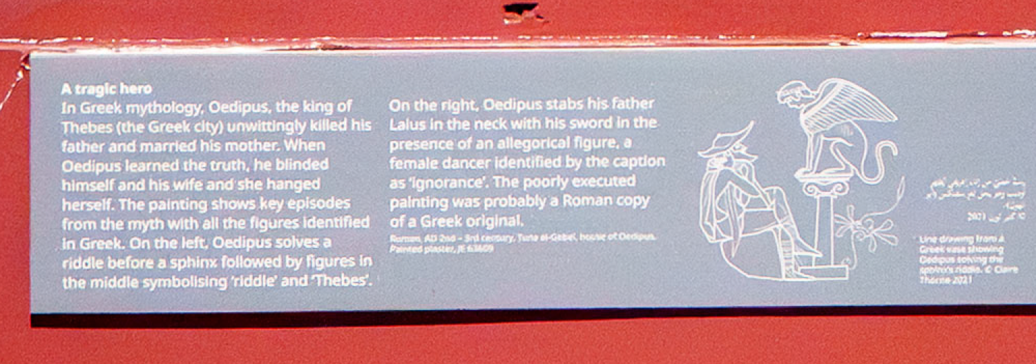 把字放大了,这幅图讲了一个希腊的神话故事。俄狄浦斯杀掉了自己的生父,娶了自己的生母。Oh My!希腊神话故事总是这么污染心灵。然后看到了最后一句:图画画的这么差,可能是罗马时期的山寨作品。我:?????图画画得多么差?抬头看看图画