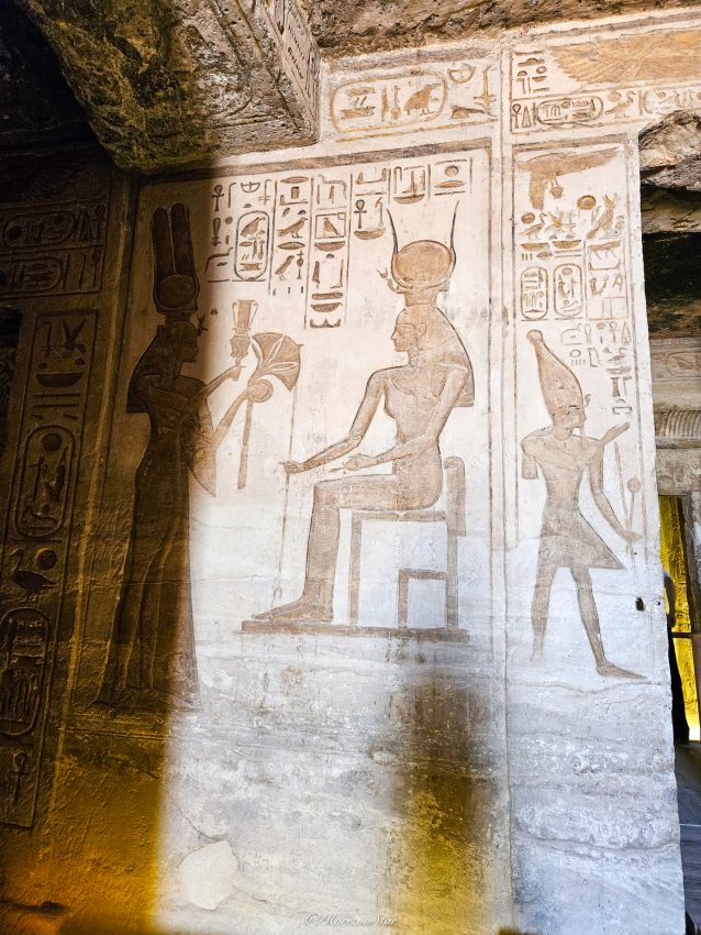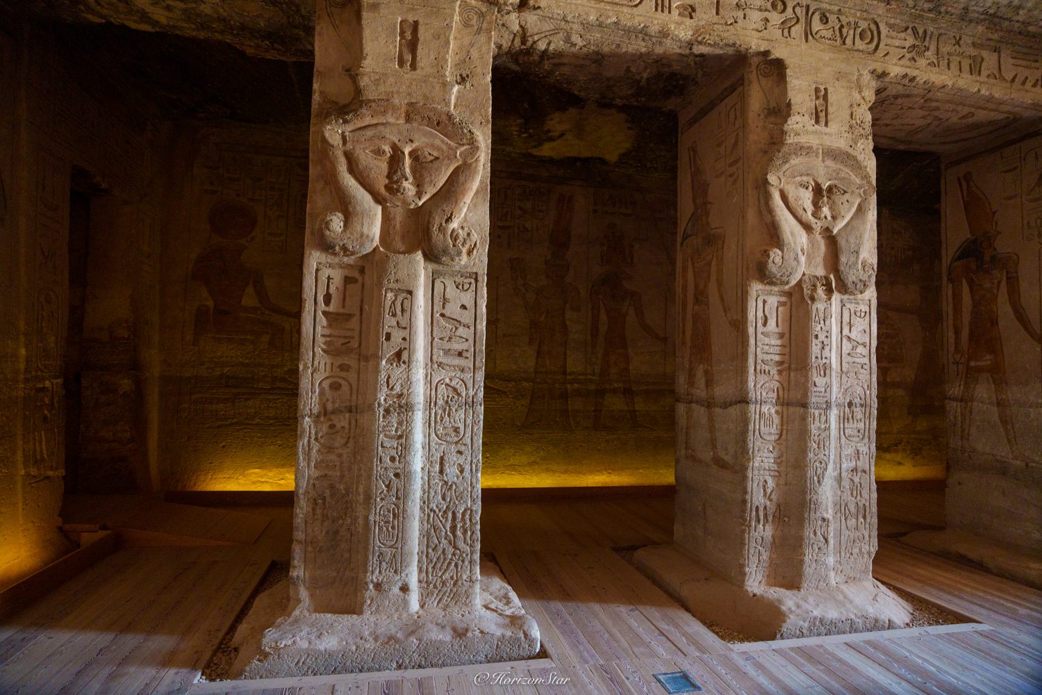 小神庙里面的支撑柱就不是皇后的全身像了,而是女神哈索尔 (Hathor),掌管爱、音乐、舞蹈、美丽、生育和欢乐。