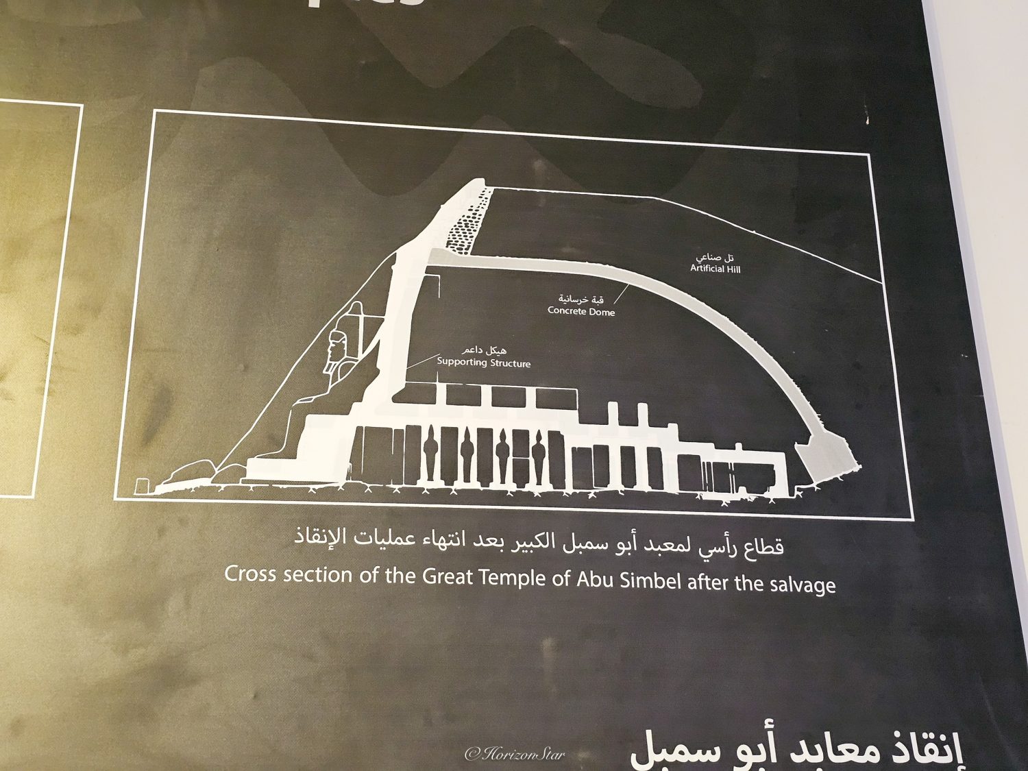 搬迁神庙的时候,40多个国家专家的通力合作,把神庙和山体切成一个个若干吨的“小块”,编上号,在高处重新组装起来。从侧面山体看,也能看到拼装的痕迹。我问Mohamed:山体是不是也是原来的石头拼接的?他说:山不重要,庙重要。山体的石头有些是新搞的。就算是新加了一部分石头进来,光这个拼装量就近乎不可能完成的任务了。更何况还是在纳赛尔湖蓄水的时候做的,不停上涨的水位线就是他们的deadline了。