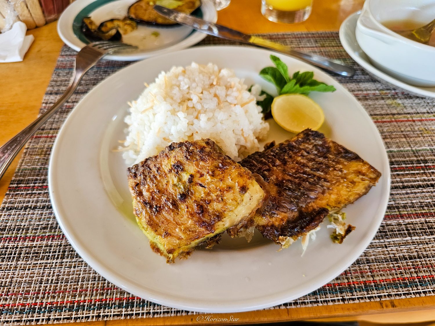 还有饭后水果随便取。我们基本没去拿,因为非洲鲫鱼做的真是超级好吃,大家都不小心吃撑了。