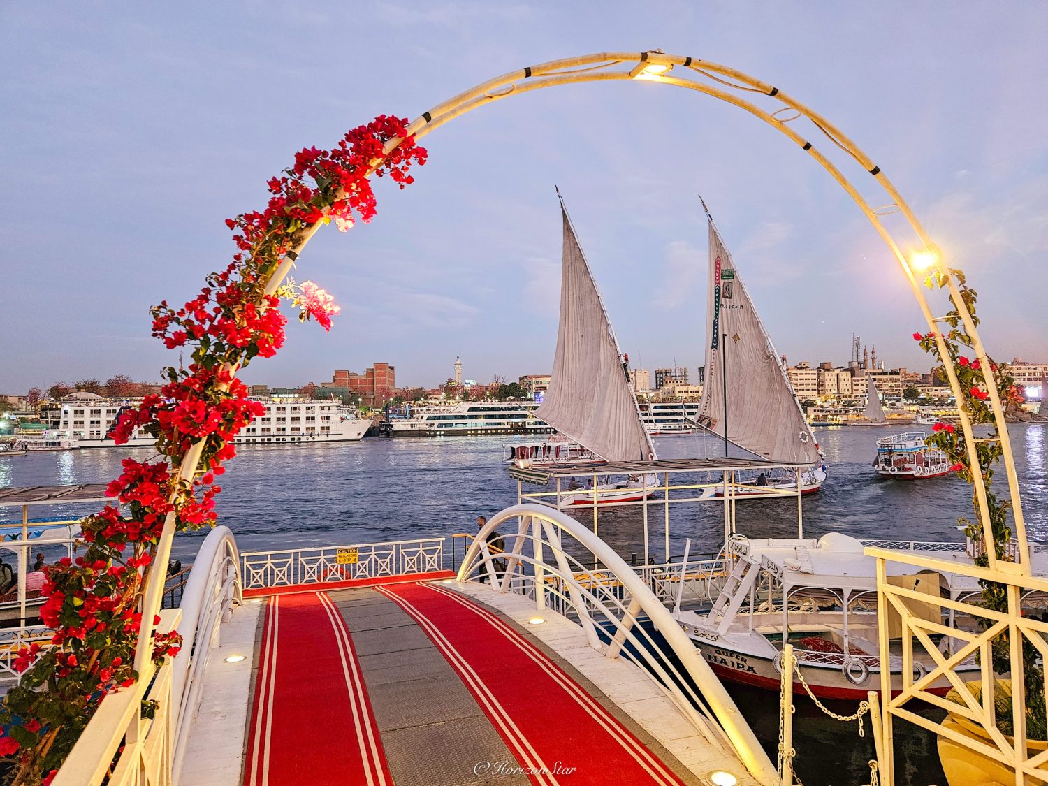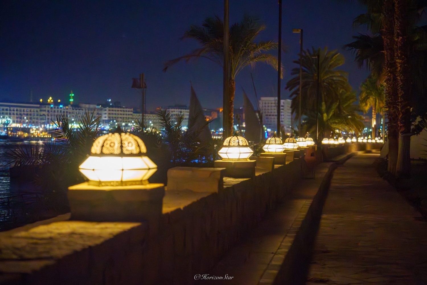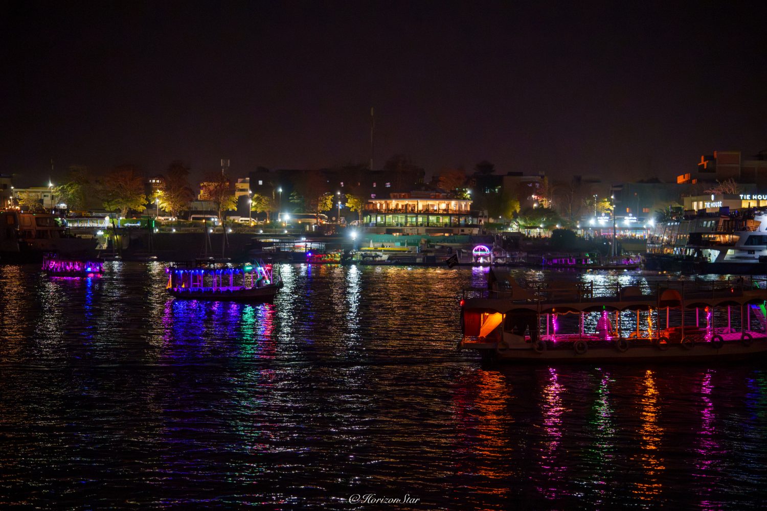 尼罗河上也开始热闹起来。挂满颜色浓烈的彩灯的船,大声播放着音乐。瞬间就把你从几千年前拉回到当代的县城。