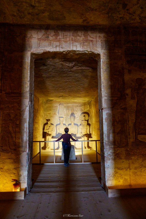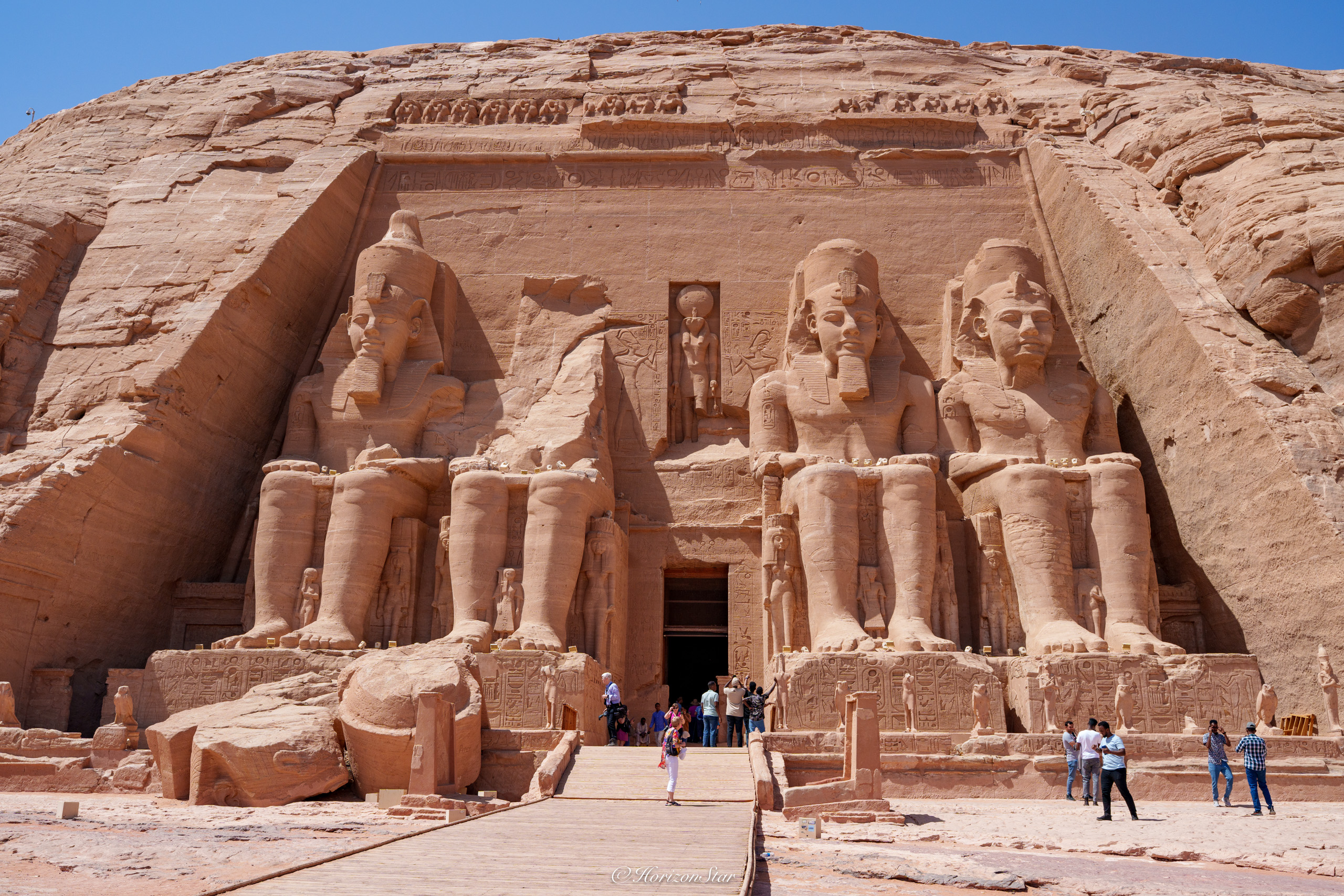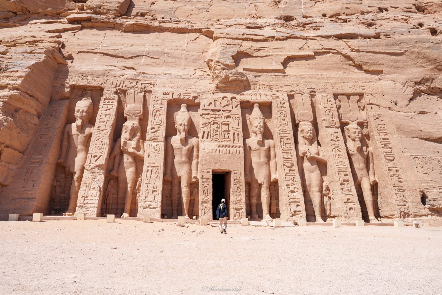 往前走,视线无法离开这四座雕像。当巨大的雕像完全展现在眼前的时候,只觉得一股威压扑面而来。不需要夸张的表情与动作,就这样如天神般正襟危坐,俯瞰眼前的众生。即使创世神阿蒙,都显得那么的渺小。比肩创世神,我认为这才是拉美西斯的本意吧。那种震撼是看电脑屏幕前的照片和视频所体会不到的。
