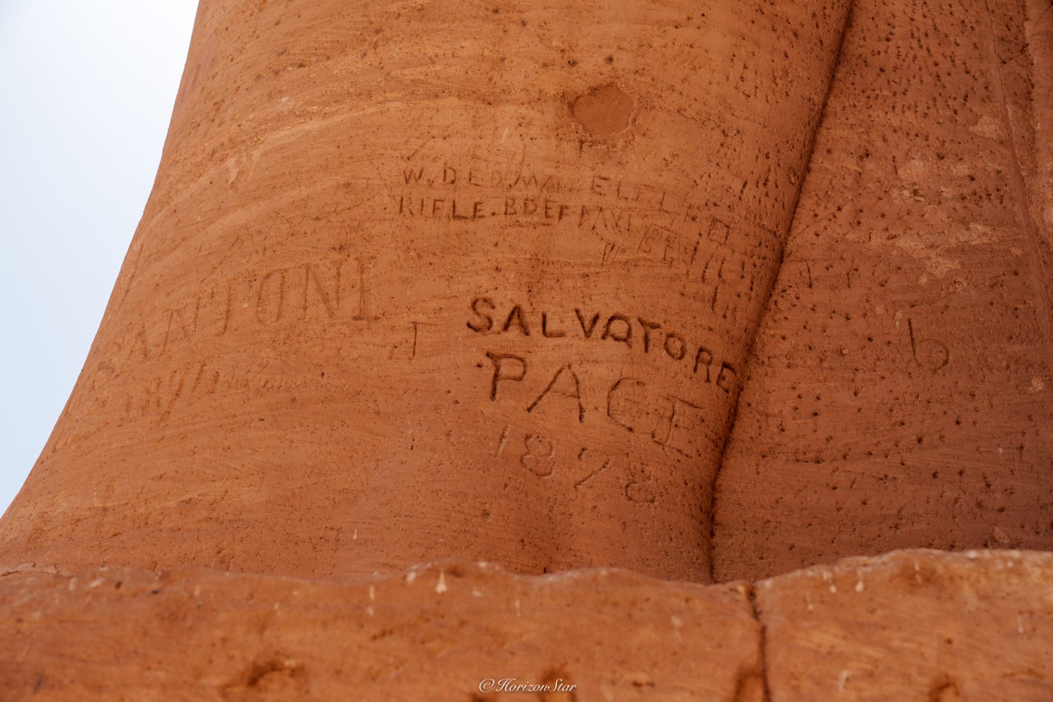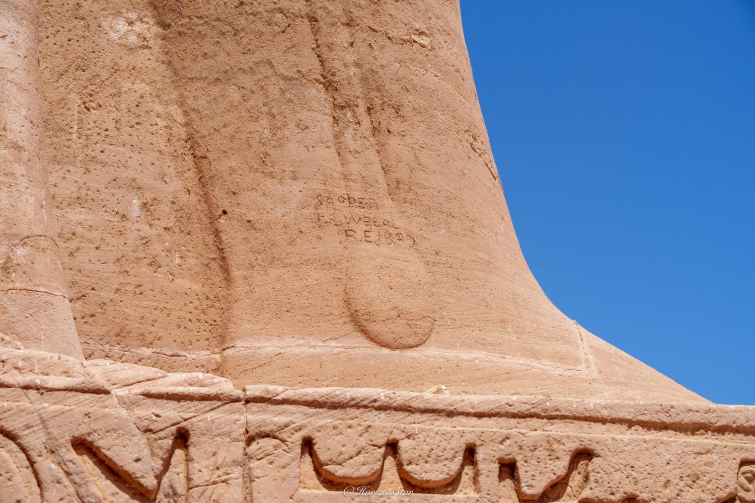 而整个神庙里,只要人能够得到的地方,都刻着某某到此一游。虽说现在看来是不讲公德的行为。但是这些涂鸦在很多情况下,还会帮助考古学家。比如刻在神庙正门第一个雕像腿上的古希腊文,让人知道了这个神庙在埃及的希腊罗马时期(也就是公元前300多年),还在被零星的使用着。当涂鸦经历了时间的洗礼,也会升华了,成为了古代的涂鸦。