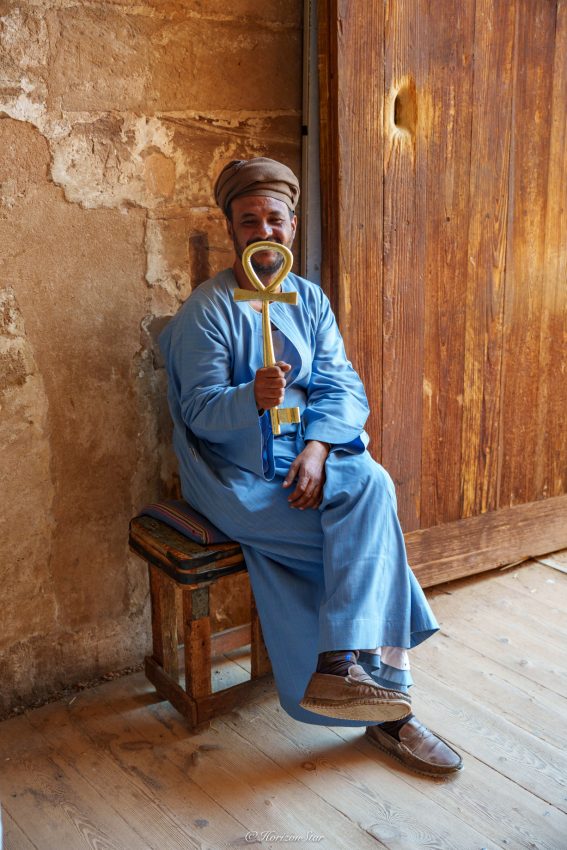 穆罕迈德给我们讲完了,他就躲到神庙前面的咖啡店里去了,让我们自己进去观赏。不得不说导游选的时间很好。早晨挤满了人的神庙,现在竟然可以经常的拍到无人的场景。一进门,还没来得及再次震撼,就被门卫喊住了。他举着金光闪闪的生命符号,笑着举到我面前。大叔下意识的就拍了一张。然后他就开始伸手要钱了。只好给了他一美元。这和小说里的看守神庙的守卫不一样啊。