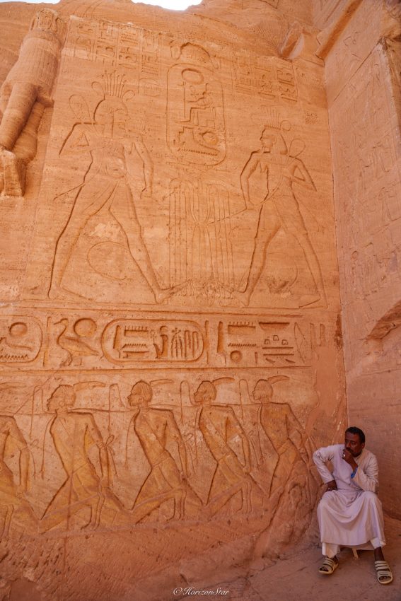 安排完帆船和努比亚村的行程后,他就开始滔滔不绝的讲述埃及象形文字和各种历史。他在大学里学了四年埃及的象形文字,基本所有的文字都认识。说着说着,就快到阿布辛贝神庙的时候,他开始讲解拉美西斯为了浪漫爱情建了这个神庙,不是耀武扬威。四个巨大神像,象征东西南北埃及边境,四方来朝。当年是怎么切割的,怎么运的,blah blah 一大堆。我们都来不及给AB夫妻俩翻译了。