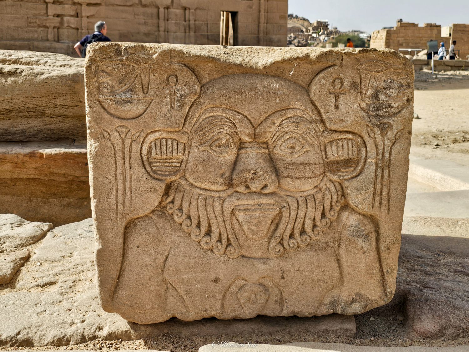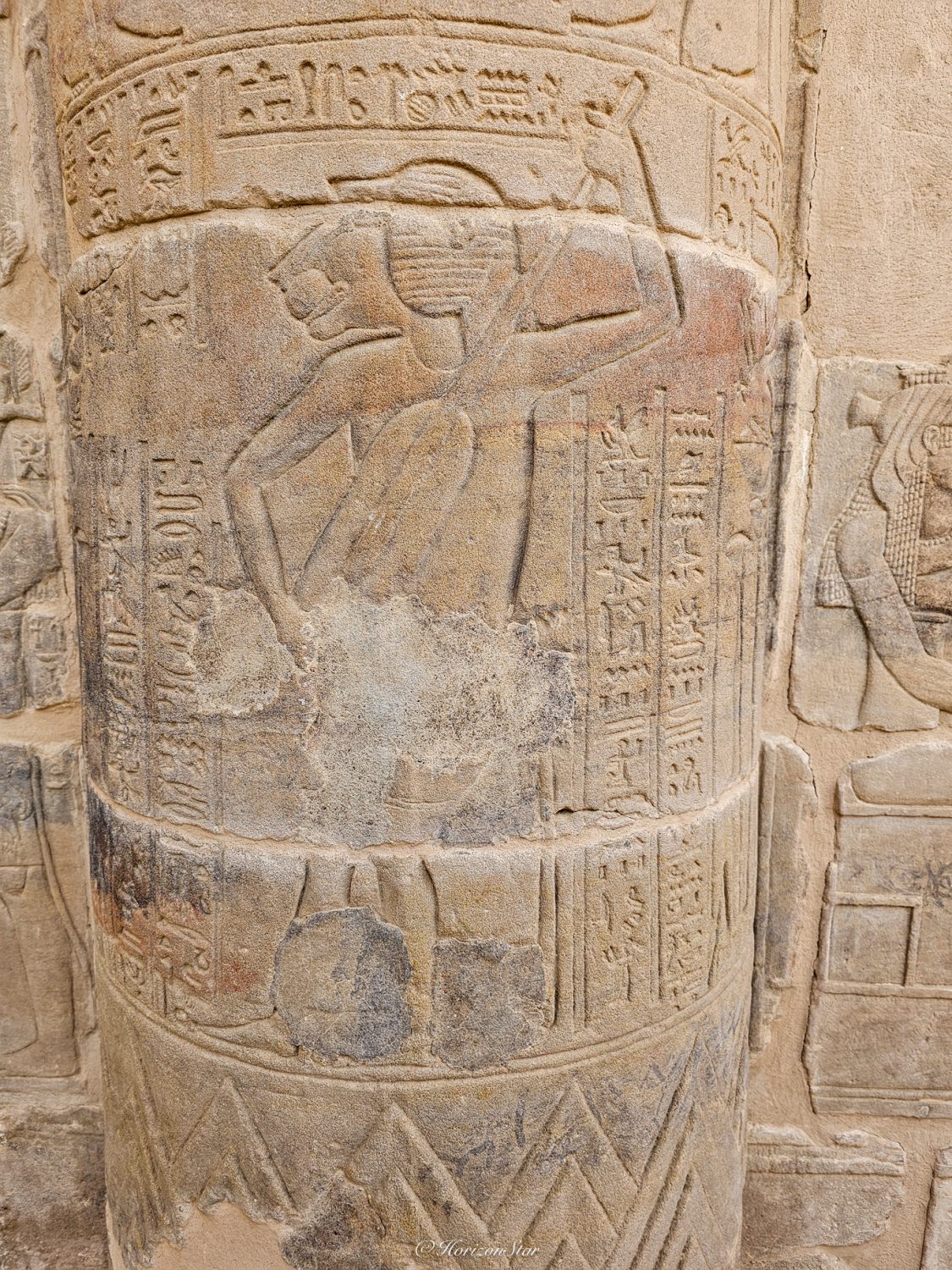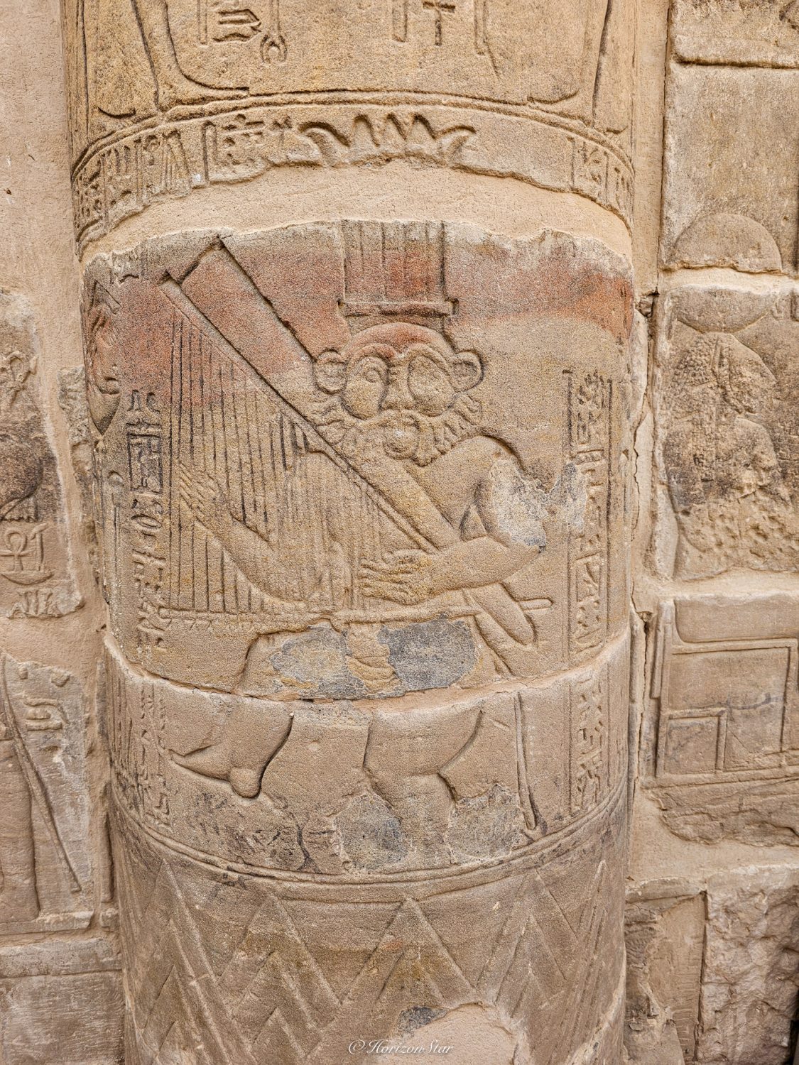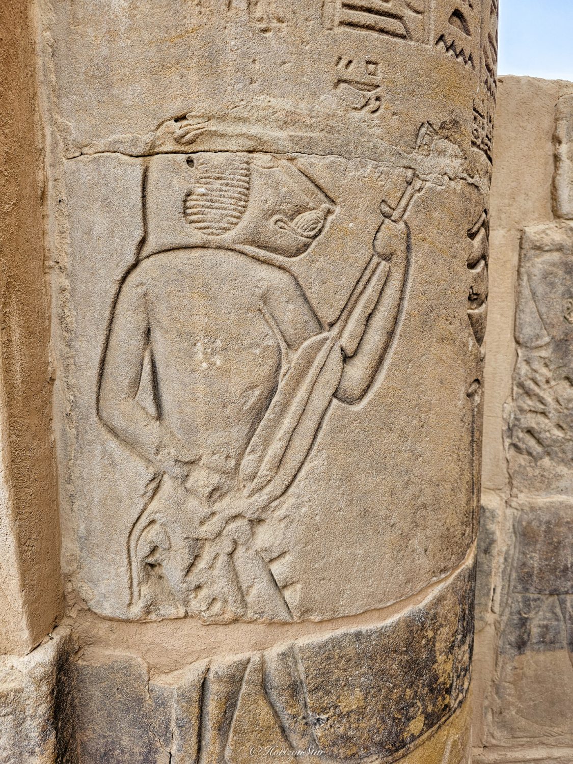 大门的两侧荷鲁斯和中国文明里的石狮子是一个作用。这一侧门塔上残存的雕刻还多一些。小肚腩雕刻的如此真切与生动,看来当年有肚腩应该是丰衣足食的象征了。