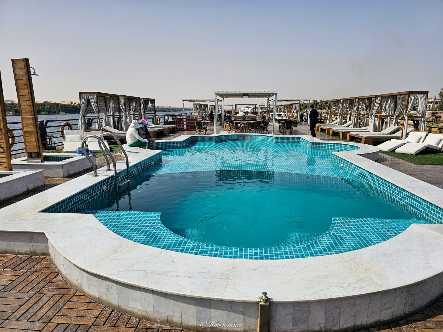 到了码头,就有服务人员过来帮忙拉行李,一路拉上船。游船订的是Mayflower,属于埃及的五星游轮。