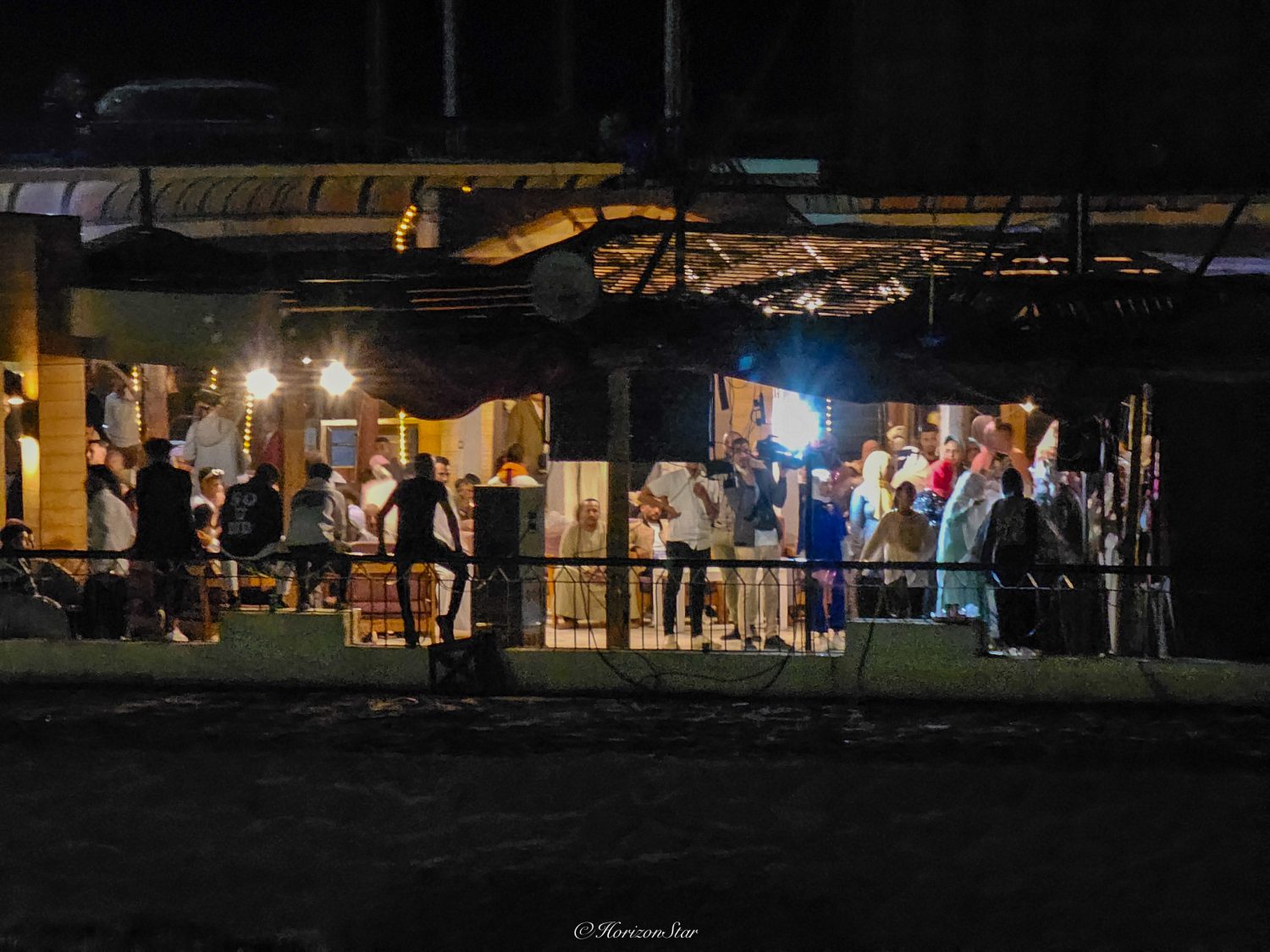 晚上照例是游轮的迎新晚会,热闹了半天,跑去顶层甲板,河岸上也有人在开Party