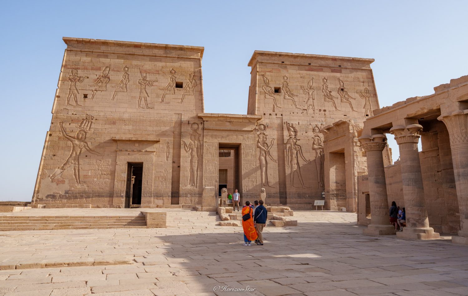 最大一个神庙是Temple of Isis(爱神庙)包括了前院,两对巨大的门塔(Pylon)以及爱神庙。这个是托勒密时代建立的(埃及艳后就是托勒密时代最后一位法老)。