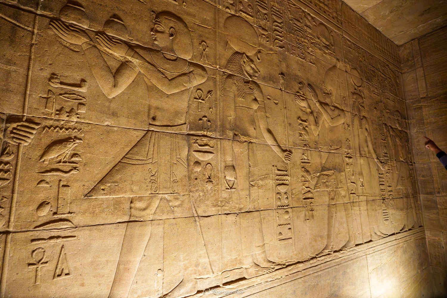 我们也不和他们挤,跑到人少的偏殿里看。而且偏殿墙壁上被凿掉的石像少很多。安静的时候,才能静下心来细细品味埃及人登峰造极的雕刻水平。