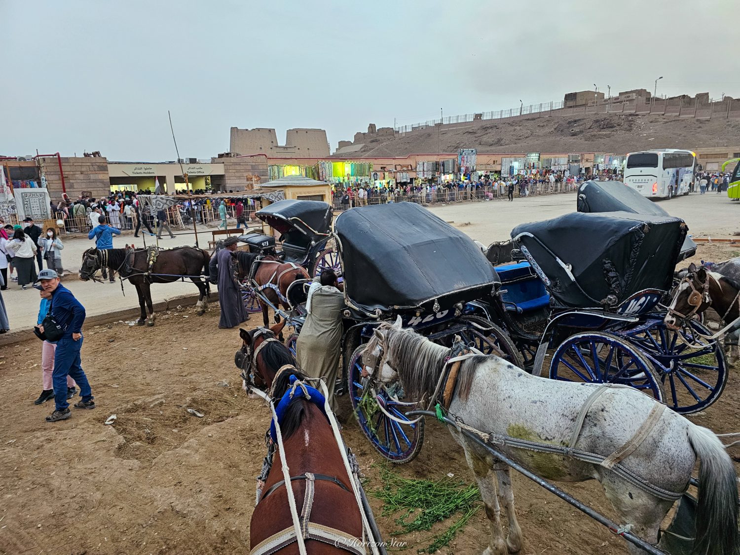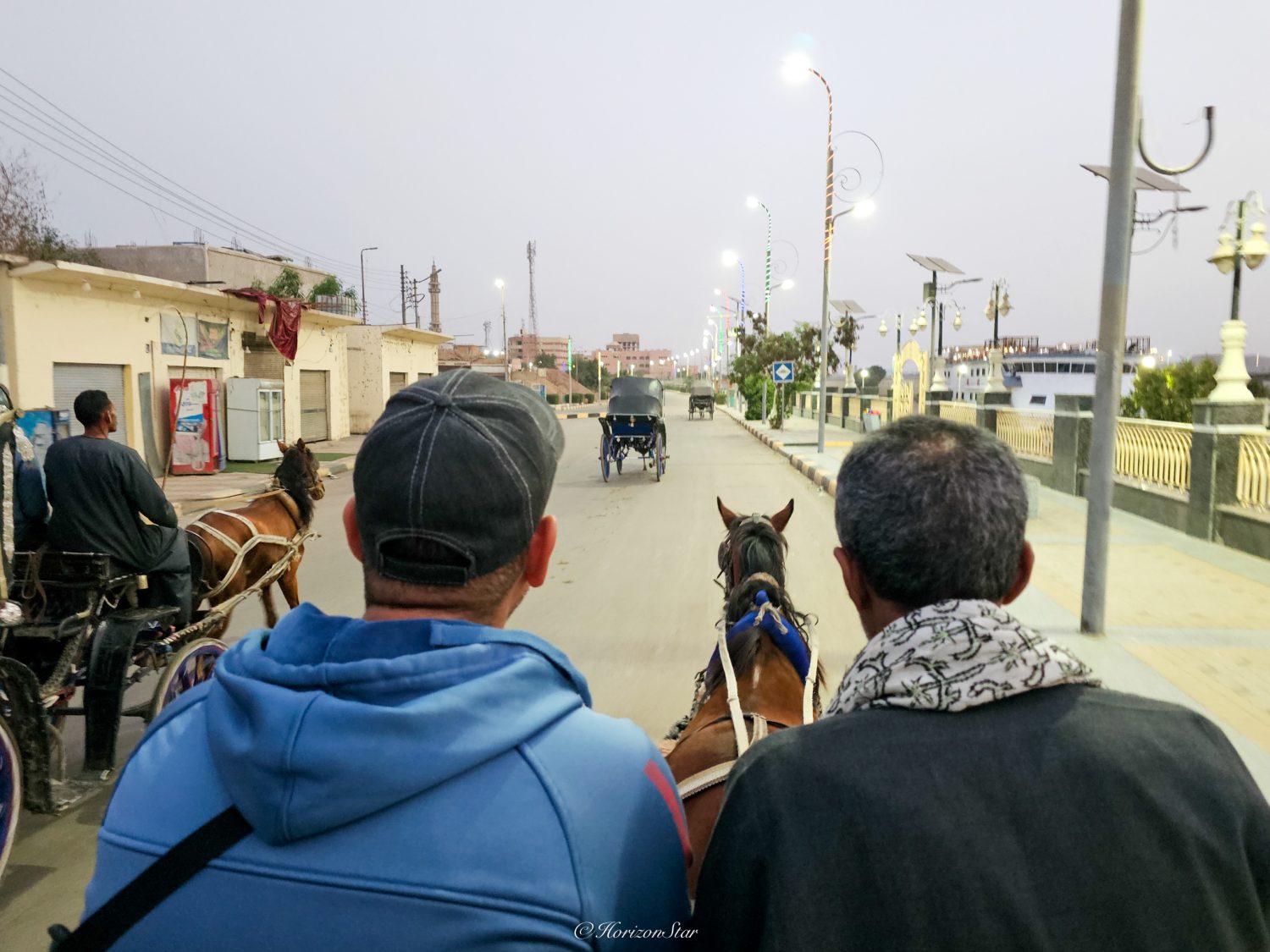 Luxor 作为埃及的第二大城市,比开罗干净漂亮整齐,最惊人的是有红绿灯,而且大部分人还遵守。城市岸边还有一个码头,也是一溜游轮排开。岸边宽敞的步行道,精美的围栏,还有路边的马车。这里的马车好干净,状况也好。但是马也是都不怎么胖,露着肋骨。