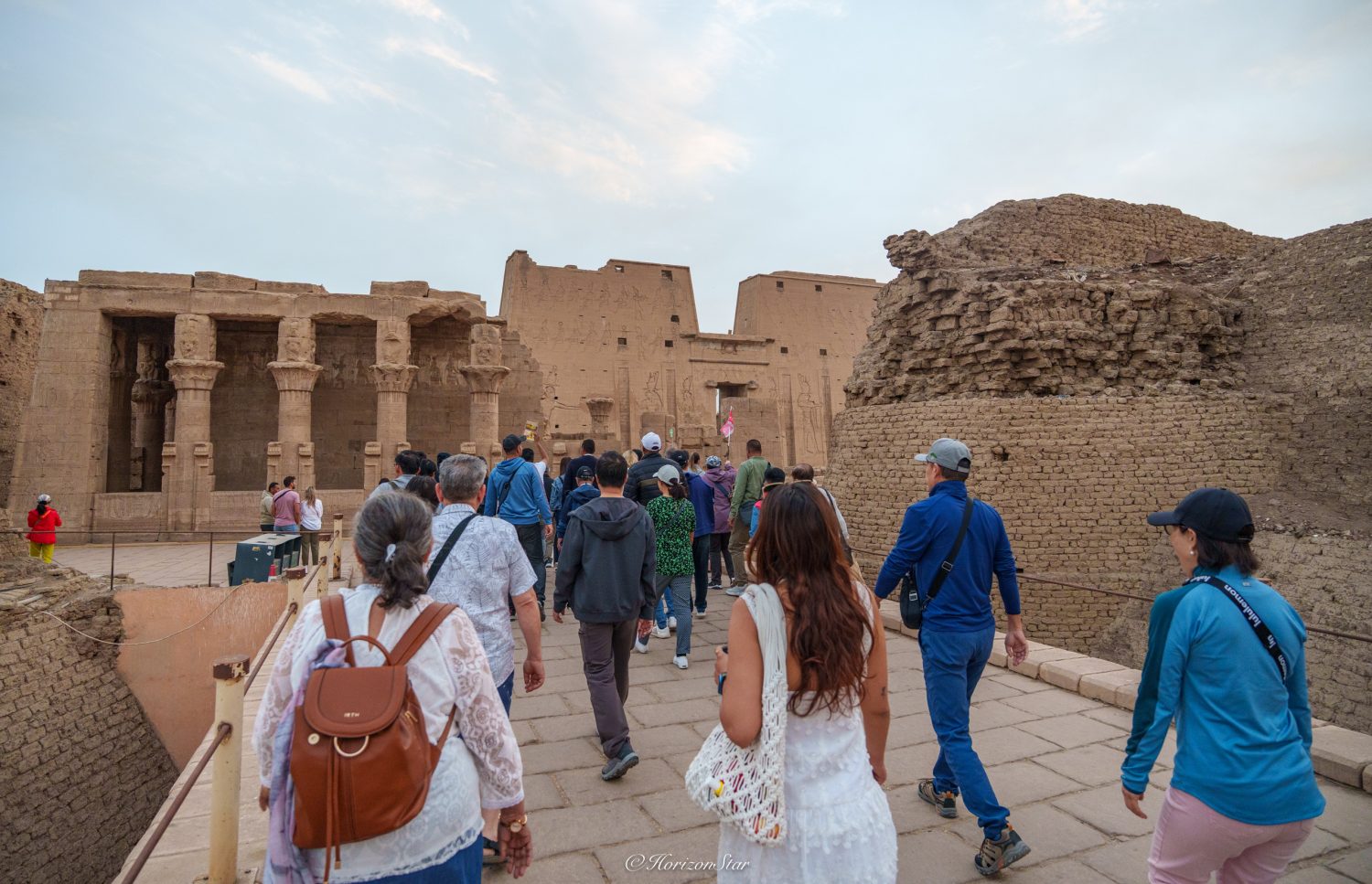 始建于公元前57年的Edfu(爱得福)神庙,花费了180多年才建成。和我们早先看的菲莱神庙,Kom Obo神庙,都是埃及皇朝晚期托勒密时代的建筑了。建造的地点就是在荷鲁斯的诞生创造之地。