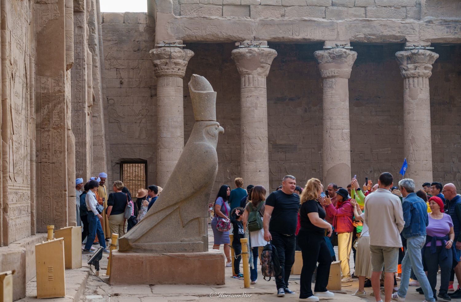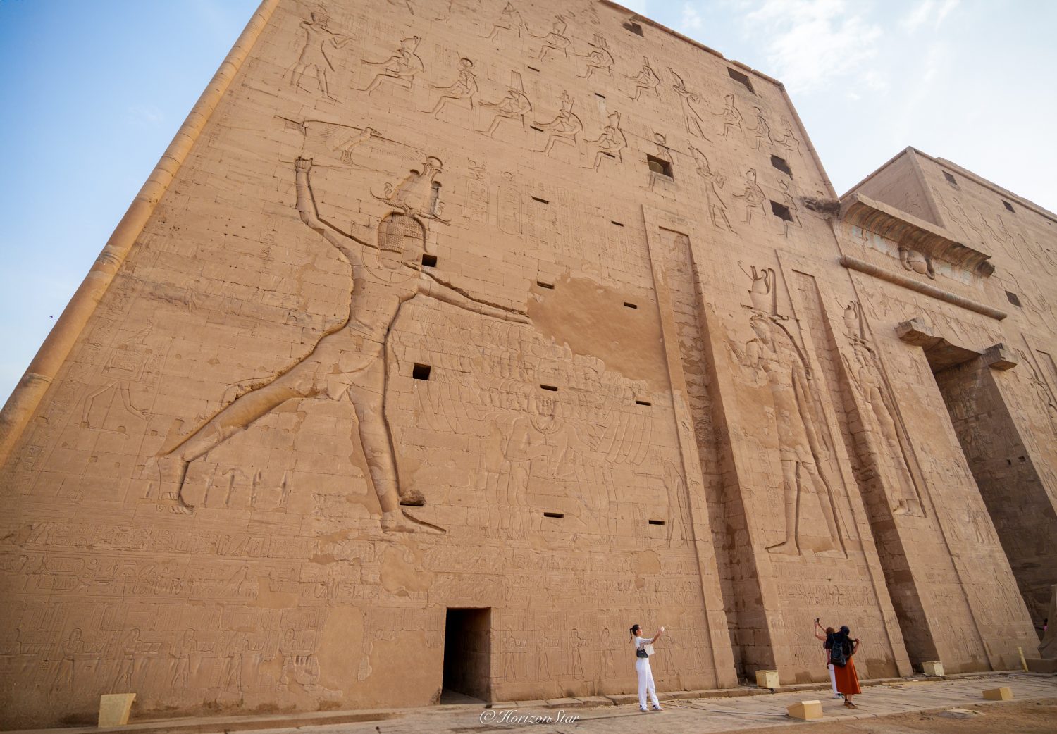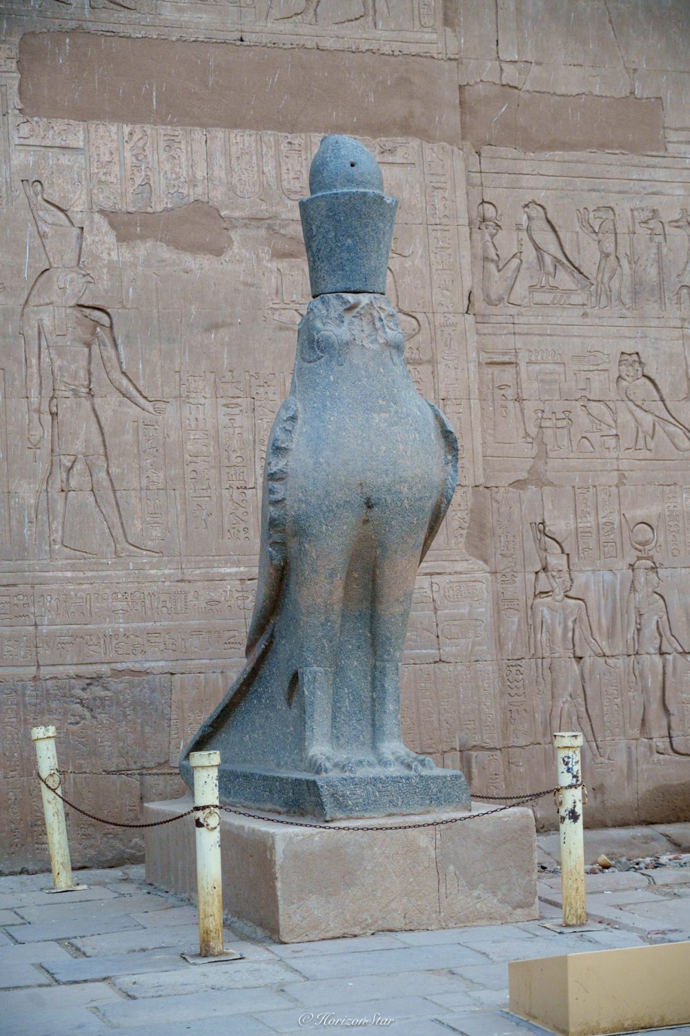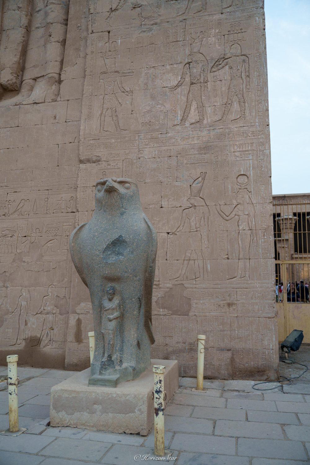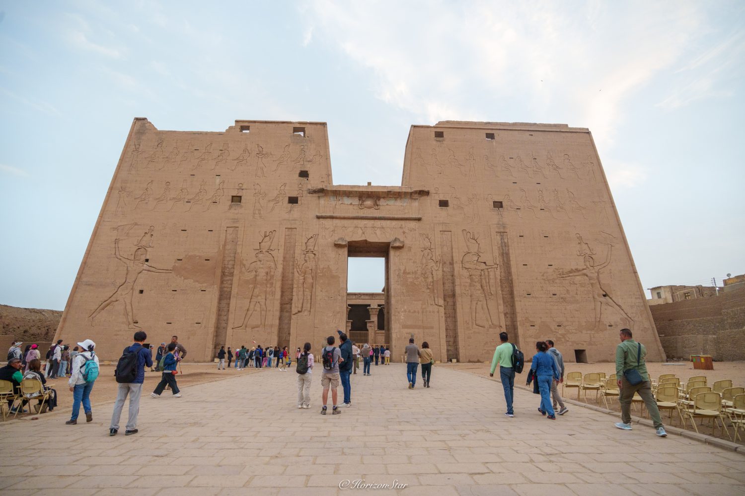 爱得福神庙,因为它供奉的是天空之神,法老的保护神,荷鲁斯,所以又叫荷鲁斯神庙。门口两个神兽就是荷鲁斯了。