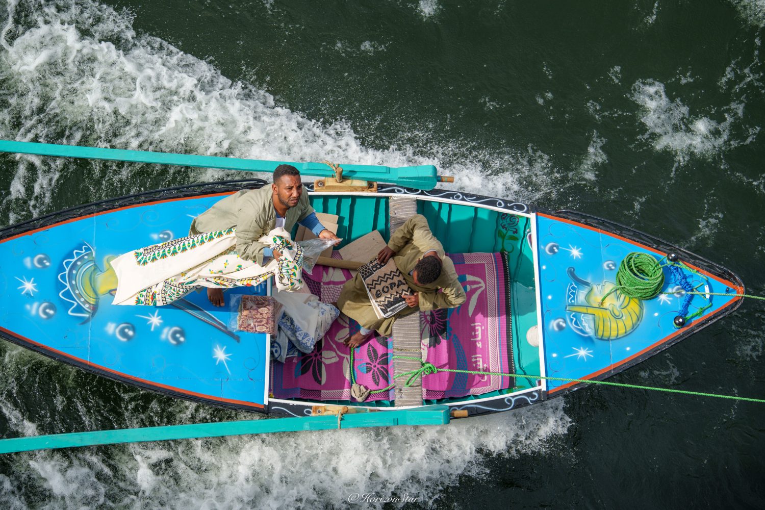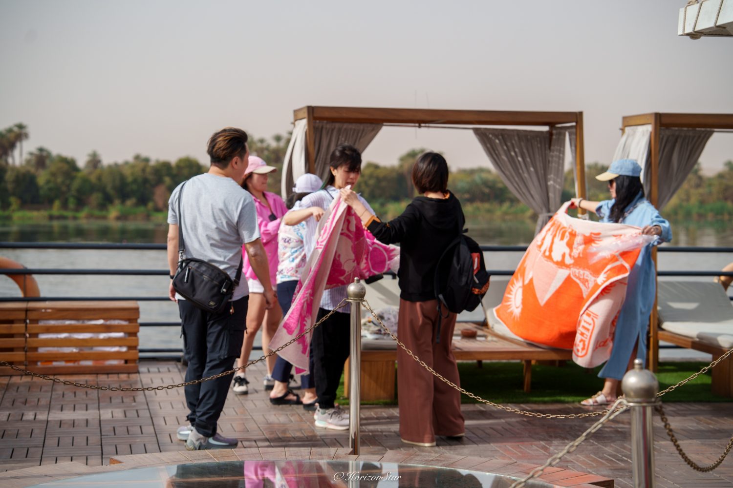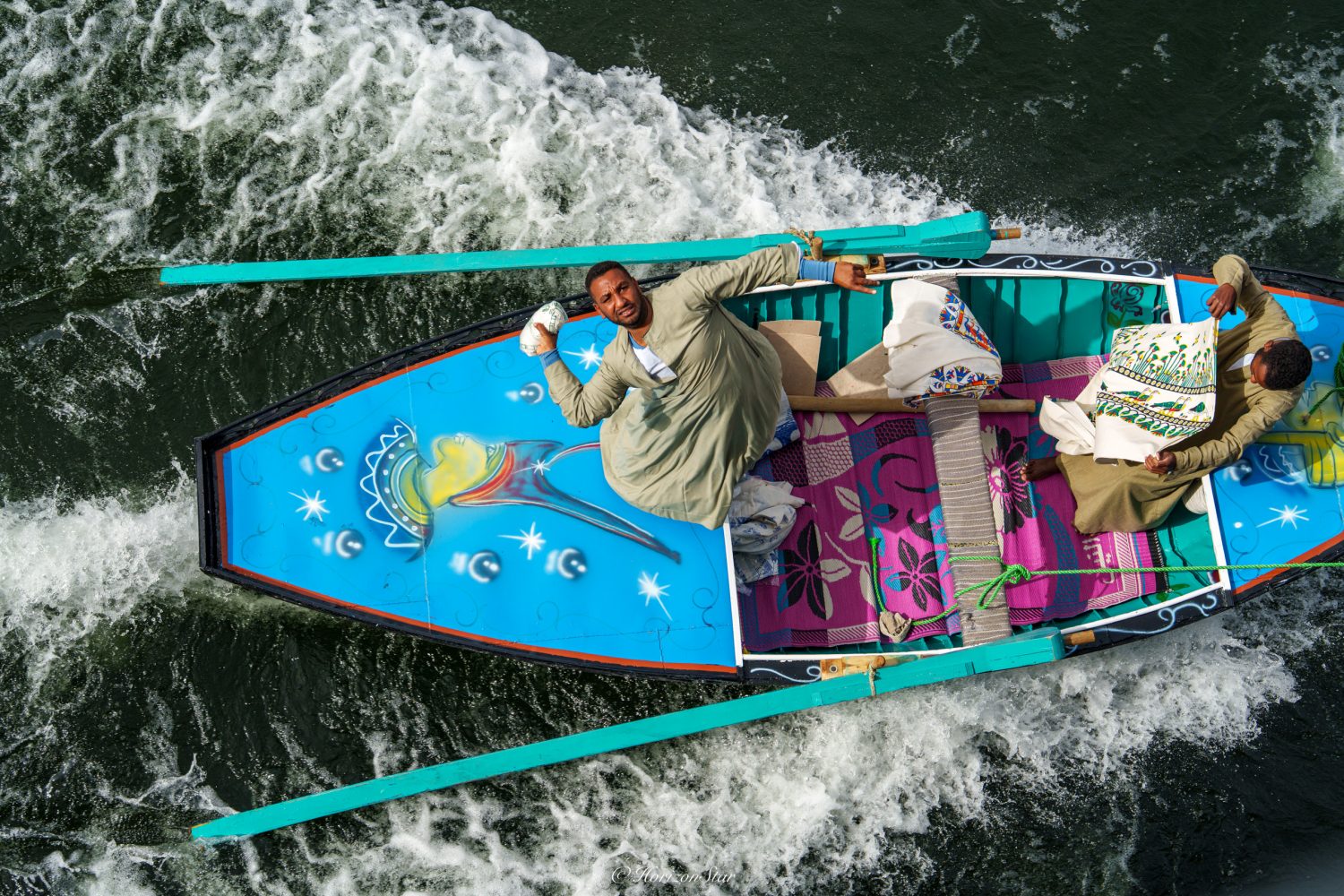 吃完了饭,我们也跑到楼顶甲板,看独树一帜的尼罗河小贩在河上贩售商品。