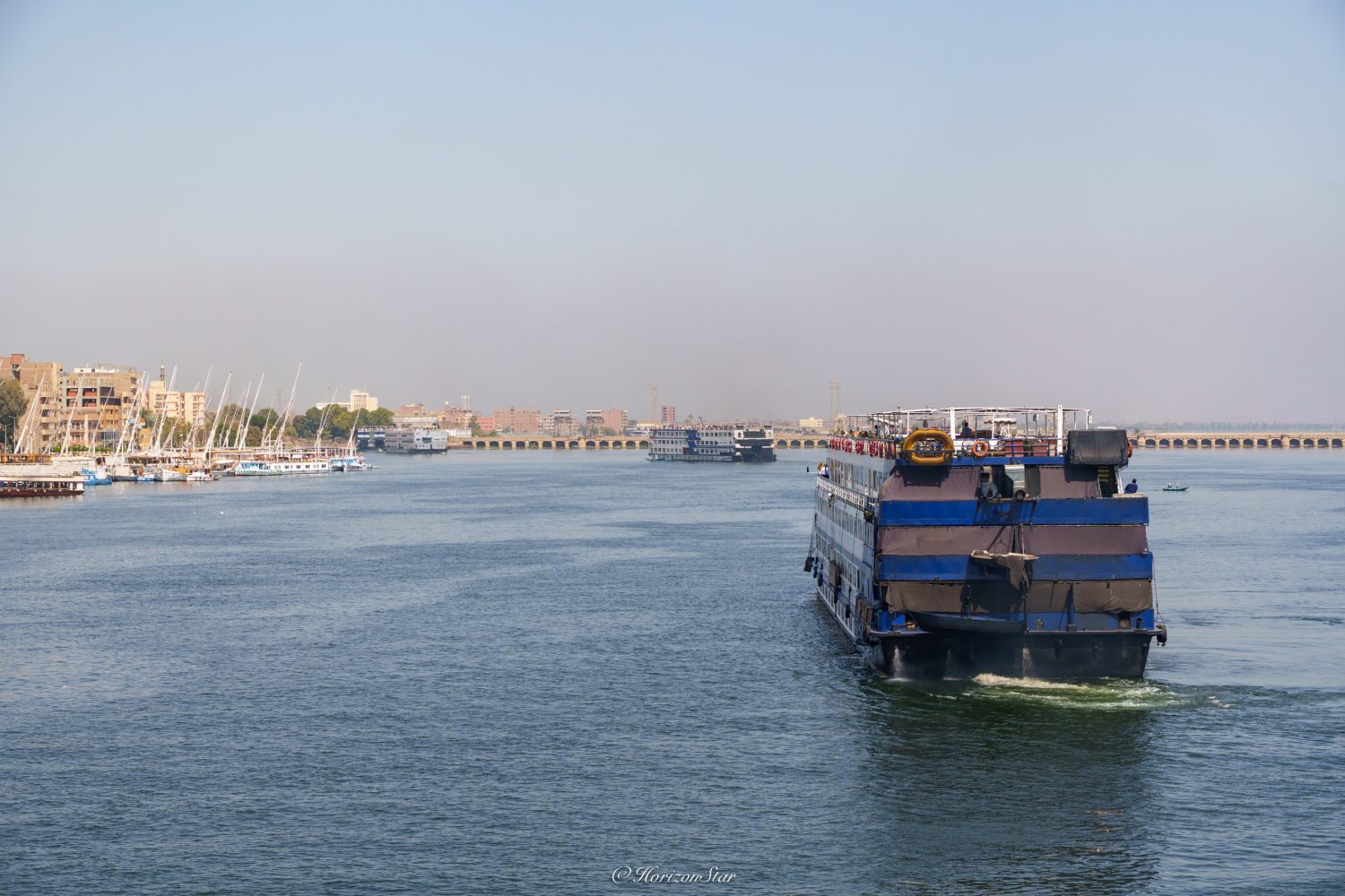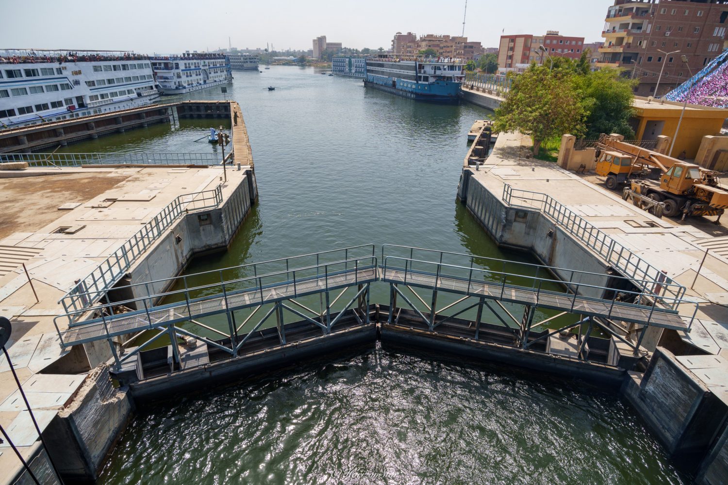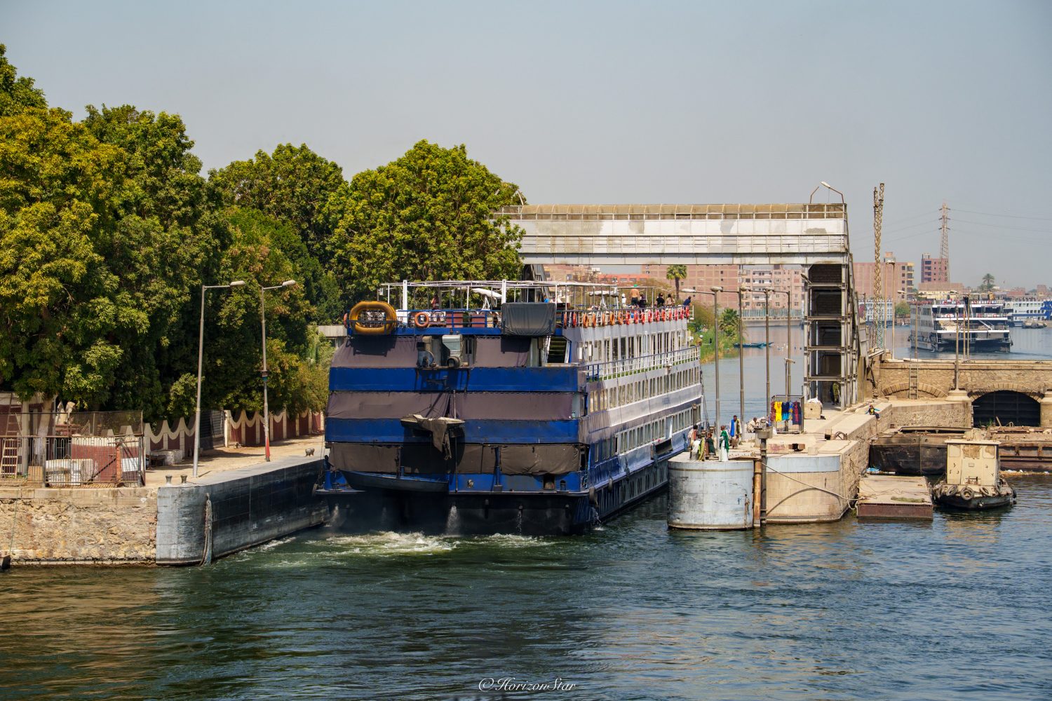 这边交易还在进行着,我们的船已经开始了尼罗河竞速模式。谁能抢先开到闸口,谁先过,谁就能下午就开到Luxor,还可以看灯光秀。不然要第二天才能去冲关,压缩了第二天的行程。因此这是真正意义上的千帆竞渡。不同的是每个都冒着黑烟,把天空染成乌黑的颜色。