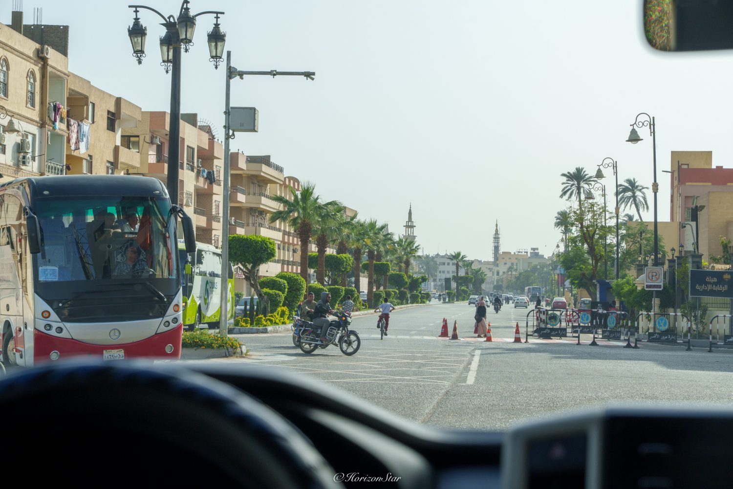 穆罕迈德领着四人穿过三条船的中庭,不紧不慢的走到岸边。天色还没完全亮起来,路灯还未熄灭,空空荡荡的马路只有零星几辆车还停在路边。层层叠叠的游轮上的游客早已经到了Edfu神庙,迟一点的或许还在路上。只有我们刚刚出门。