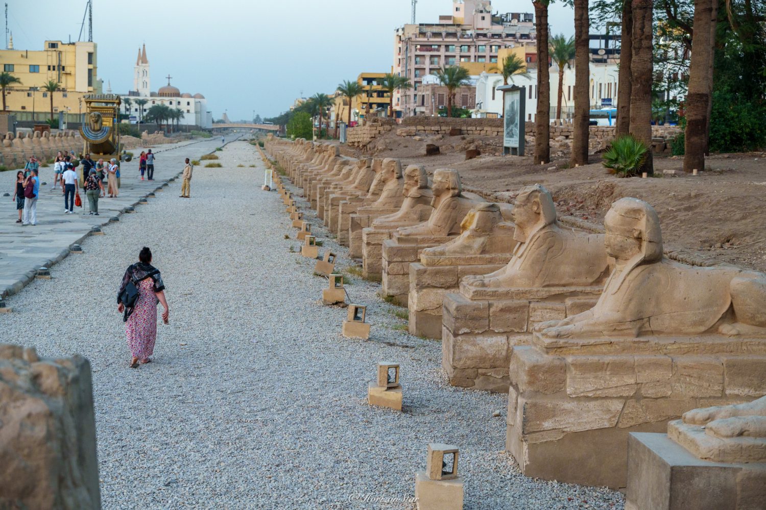 神庙对面就是斯芬克斯大道,两排狮身人面像拱卫着宽敞的道路。