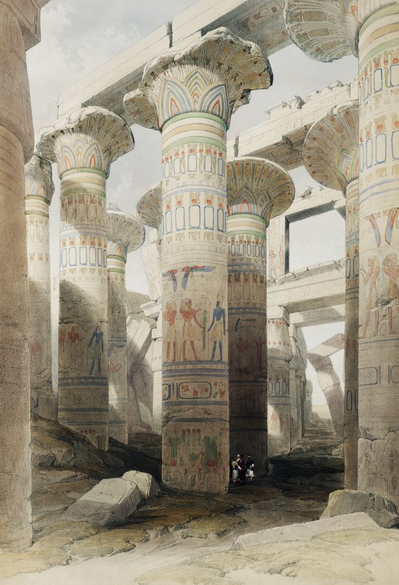 柱子表面的色彩经过了几千年依旧艳丽,徜徉在这些巨大的石柱之下,不由的让人心生敬畏。175年前, David Roberts去看的时候,颜色更鲜艳。