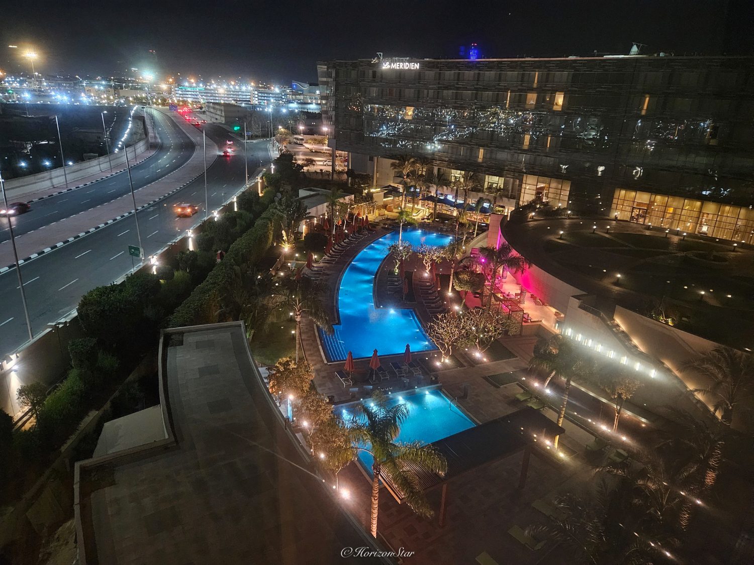 本来以为还是Hassan过来接人。突然看到了一个很瘦高的人举着我们四个人的名字的牌子,我们就走过去。他俯视着我,嘴角是斜的,眼珠瞪得快要掉出来,模样好像从动画里走出来的大反派。我脑子有点懵:这老兄和我做鬼脸吧?但是看他一本正经的说话,就当场忍不住要笑。后面跟着的两个同飞机的白人已经笑喷了,为了礼貌,他俩转头面壁去笑了。同行的其他三个小伙伴也都躲后面笑去了,把大叔推到前面和他交涉。我没办法,只好看着他的脸说话。但是句子说不到一半就得赶紧闭嘴,装作英文想不起来的样子。不然就真的笑出声来了。我不是嘲笑他的残疾,而是他的模样实在是太好笑了。就这样三个人在后面走走笑笑,大叔在前面断断续续的说话,一会就到了机场的Meridien酒店,已经10点了。