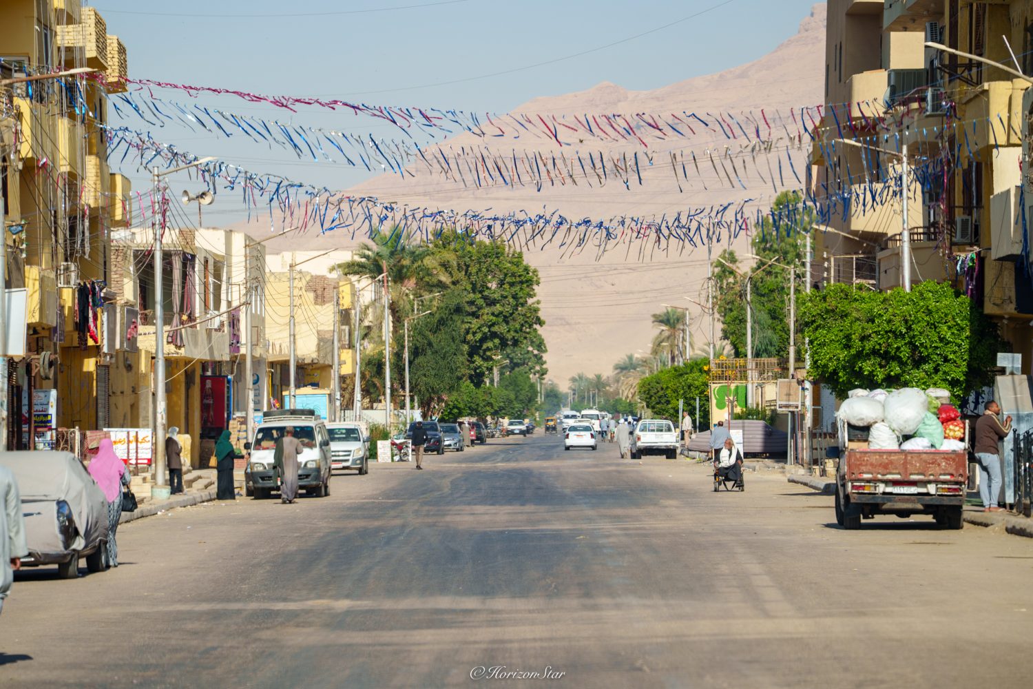 今天是斋戒月的第一天,小镇的街道上挂满了彩带