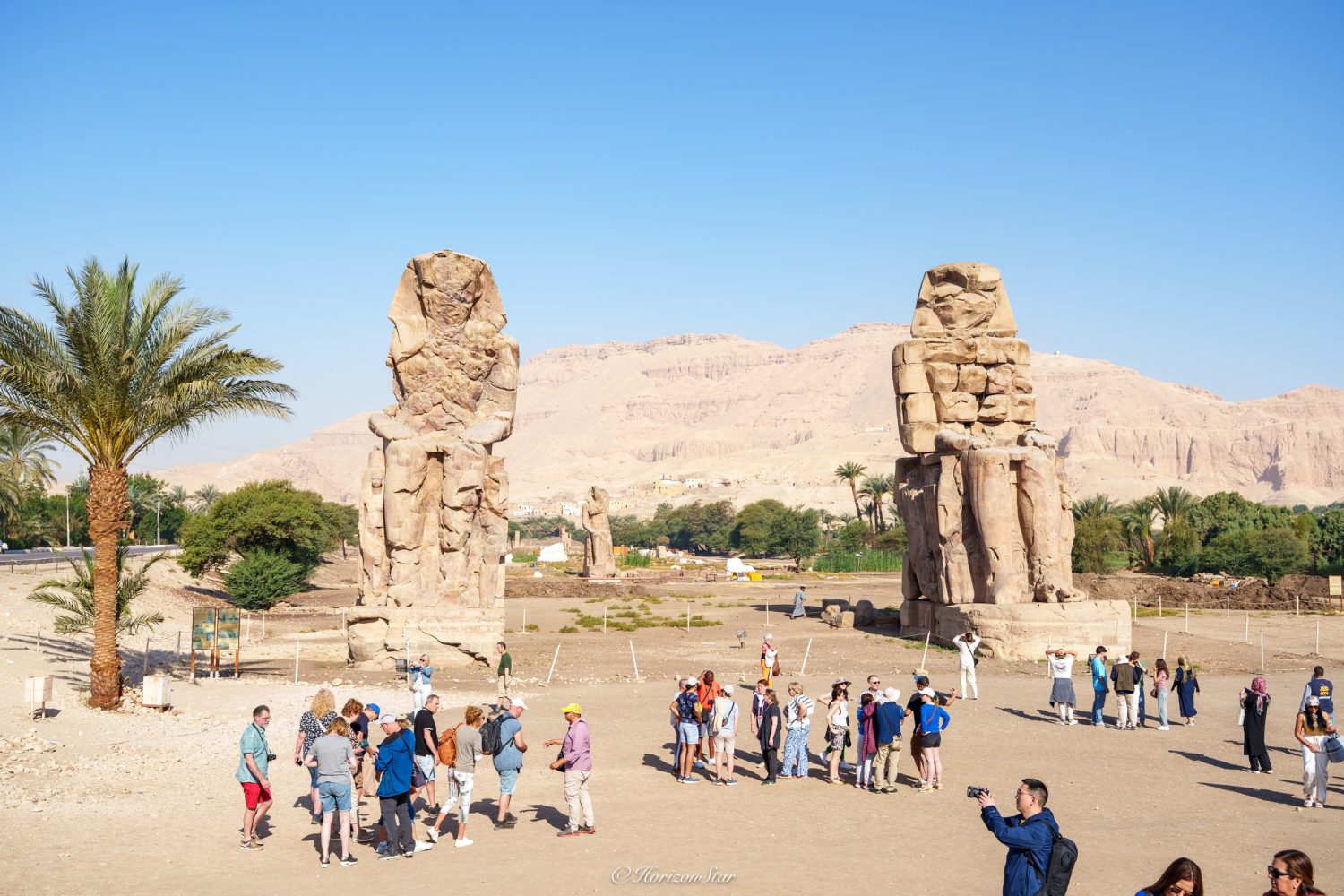 小镇downtown边上就是著名的门农石像。这里曾经是一个巨大的神庙,两个Amenhotep III法老的石像是神庙的一部分。但是随着尼罗河的洪水冲刷,现在也只有这两个巨大的石像还在坚守着不再存在的神庙。希腊人来了,看到它俩,他们的想象力又发作了,说这个是特洛伊战争中埃塞俄比亚的国王,黎明之神的儿子门农。于是法老成了希腊神话英雄。