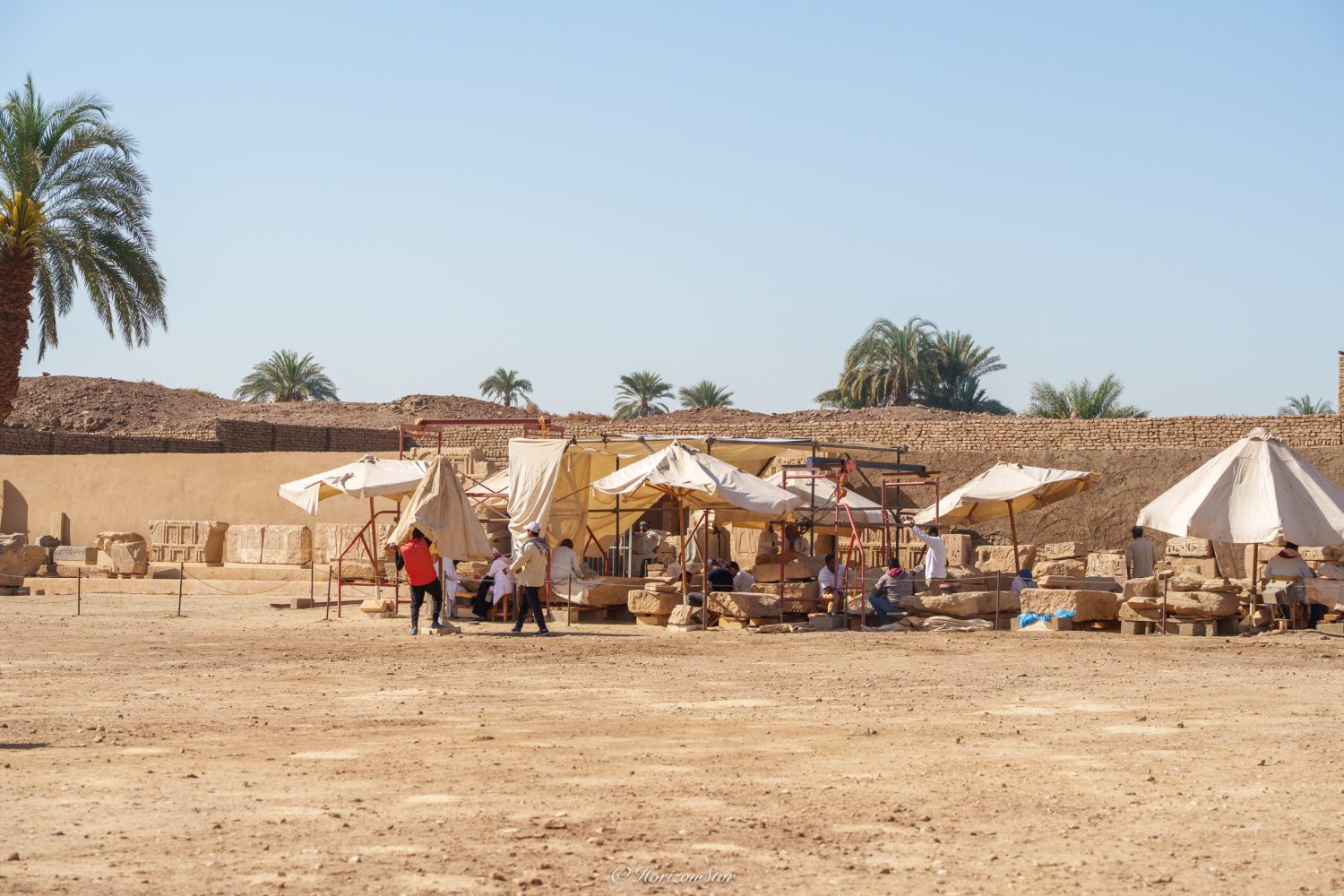 侧面是神庙的工作人员,负责它的挖掘,保养,修复。