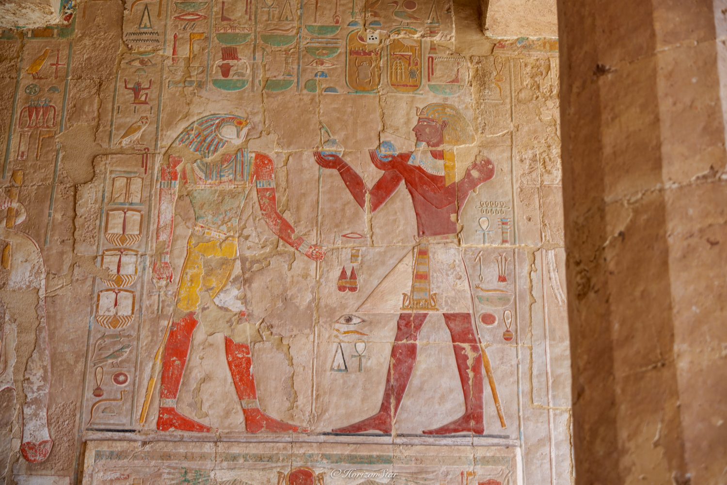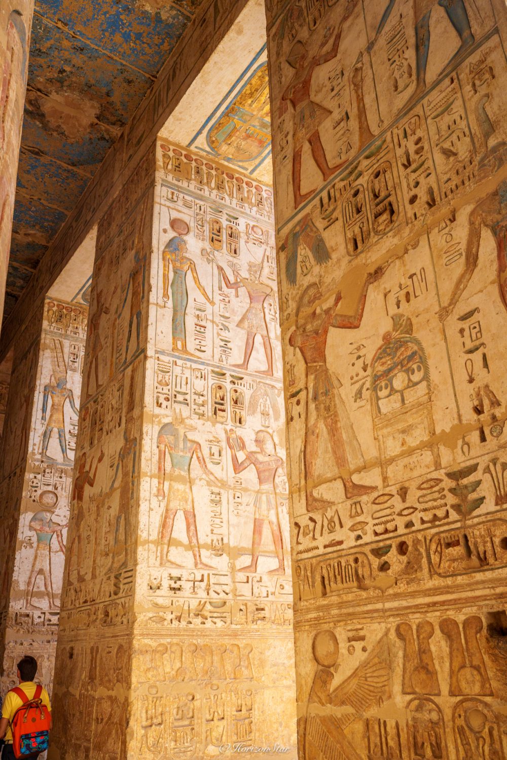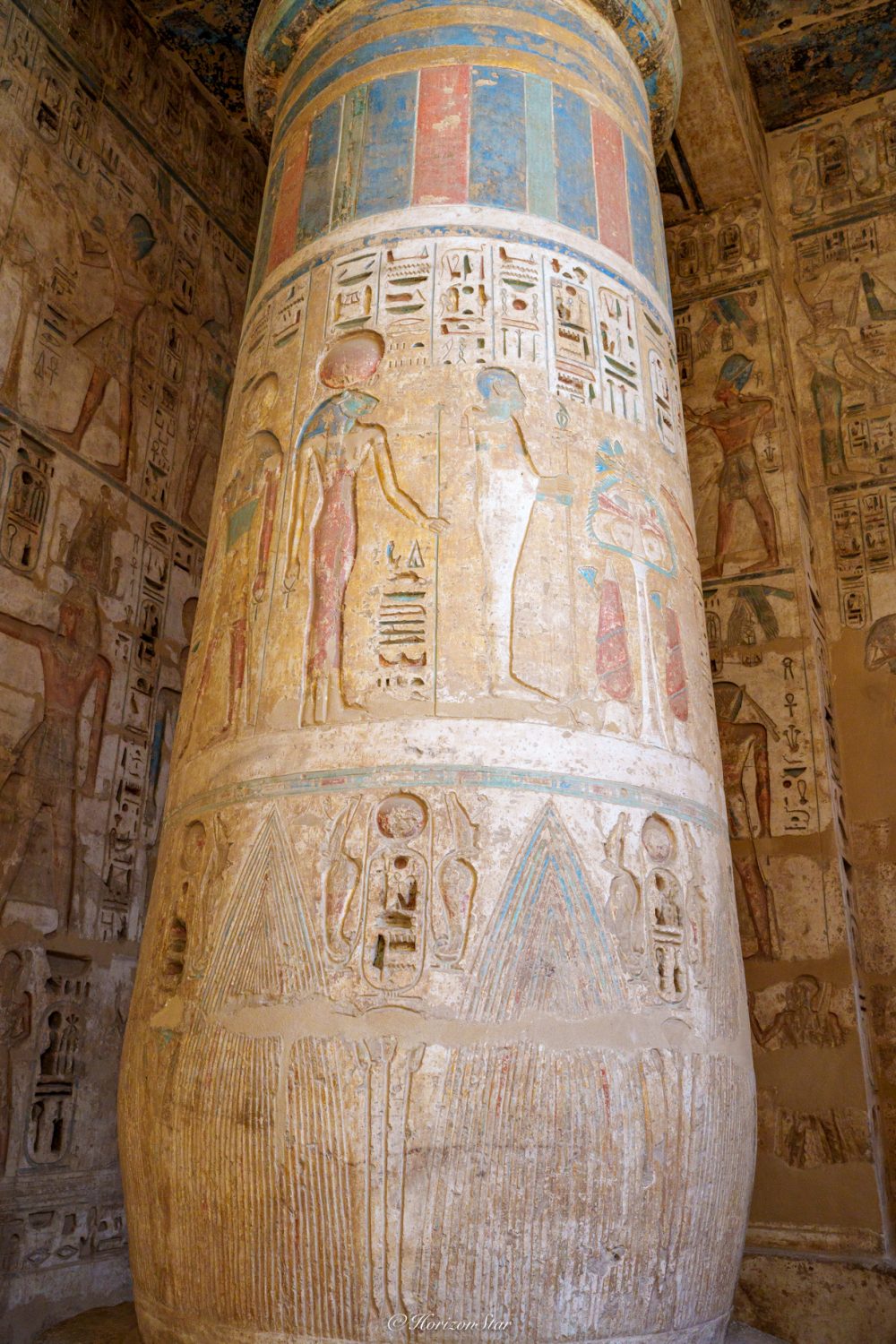 独特的古埃及的配色,给人视觉上的冲击。让我俩感觉比昨天的Karnak神庙还震惊。单色的埃及神庙就很震撼了,有了颜色简直是另一个维度了。
