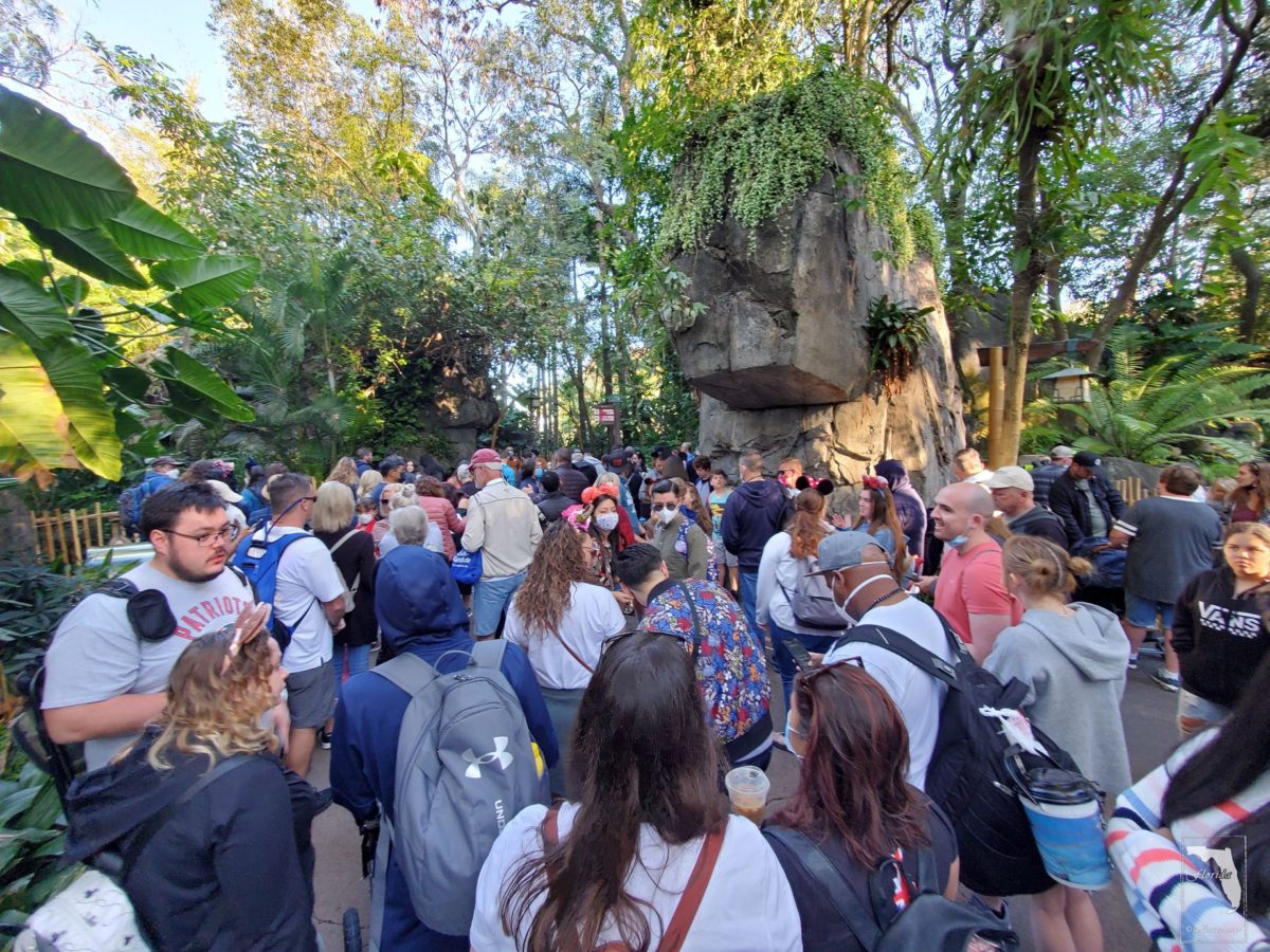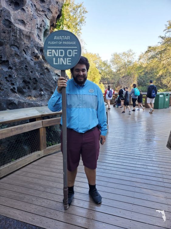 8点58分,队伍突然就开始往前移动。我俩找到空隙就往前跑。周围还有游客给我们这些冲刺的加油助威。今天要抢的是Avatar: Flight of Passage。一通晨跑,冲到了队尾。