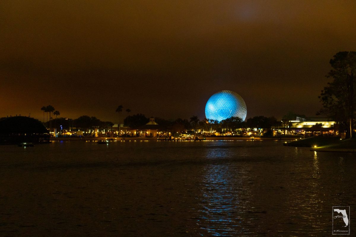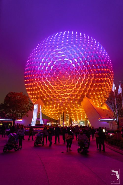 烟火结束,人群往外涌。看到了Epcot的大球,根本不急着回去了。先拍照再说。