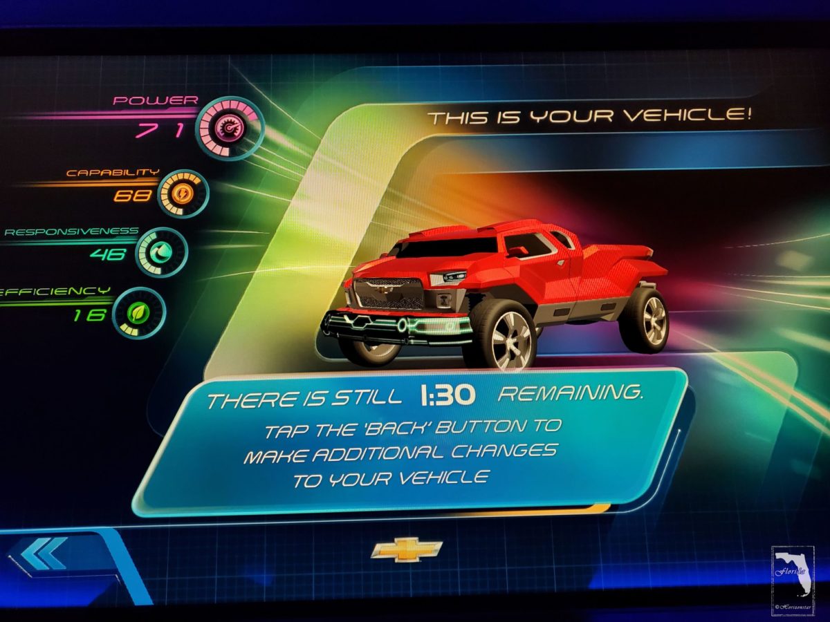 下面正好预定的Test Track到时间了。先去一个屋子设计一辆车。大叔设计了一辆卡车。Pretty cool(大叔认为)/Ugly(老婆的观点)