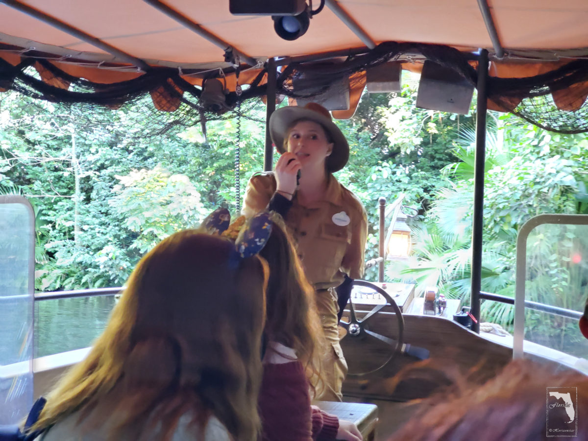 4:10分,终于进入了今天第一个Lightning Lane的项目。船上的司机兼导游小姐声情并茂的在前面给大家讲解,熟练到都能倒着开船的她,经常惊讶的发现岸上水里各种景点给大家看。能重复这么多遍还能保持着激情,不是极强的自律就是极度的热情,不管哪样,都又一次赢得了大叔的敬佩。