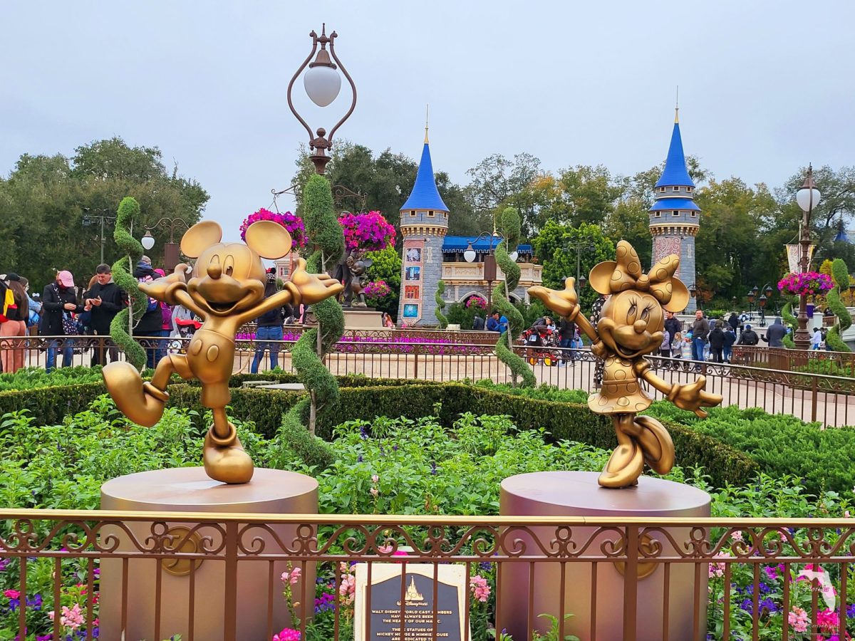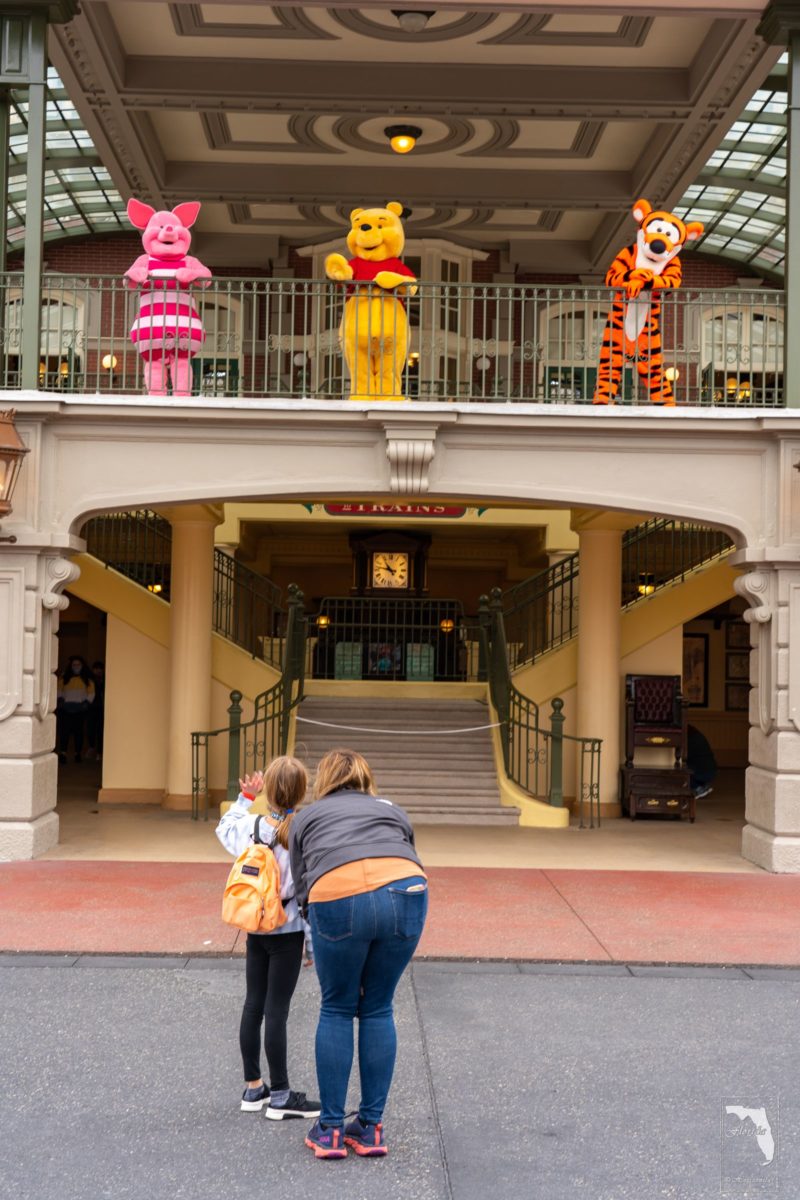 火车依旧井井有条,不一会开到入口。扫描入园门卡和指纹。然后发现门口有一个都冻绿了的米奇和米妮,结果两人又出去拍。再扫一遍进来。