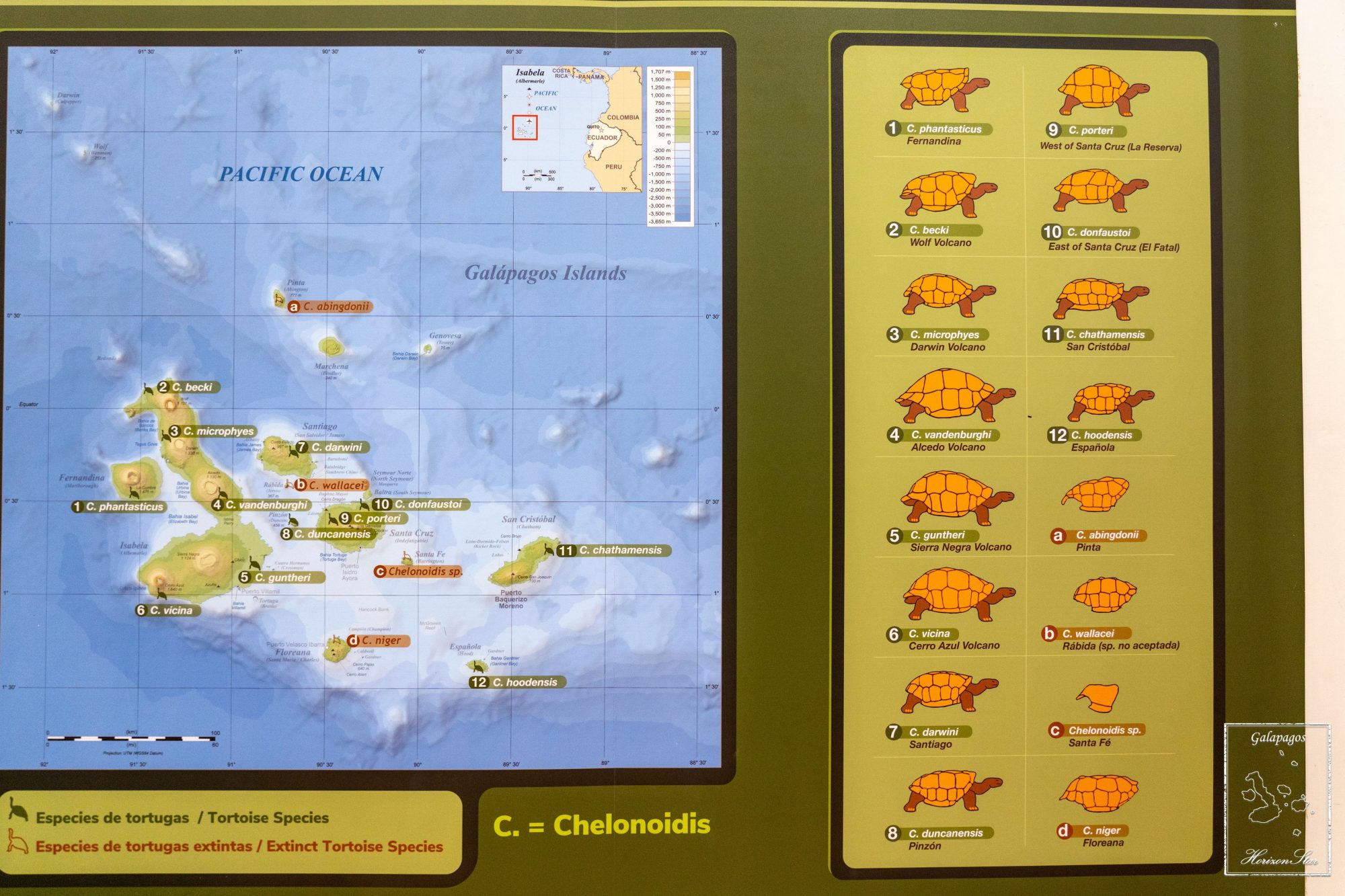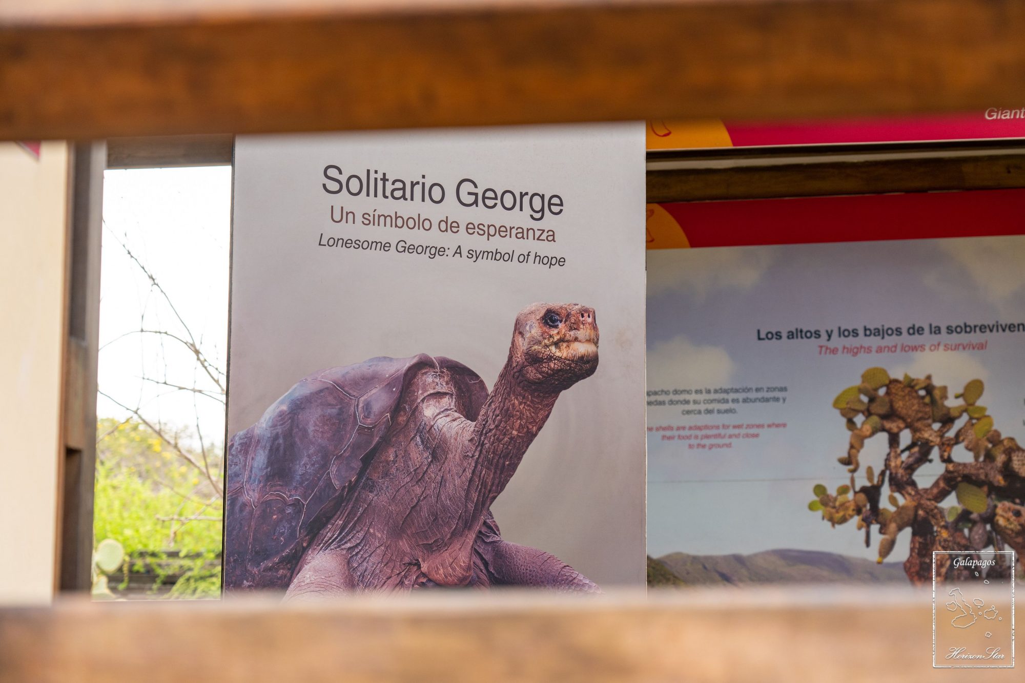大家跟着导游进去了一间神秘的房间。进去前先进隔离室降温除湿隔离10分钟。进去小黑屋里有很微弱的灯光,一只乌龟标本昂首挺立在透明的盒子里。这就是大名鼎鼎的Lonesome George。它的这个种里最后一只。可惜体弱多病,无数次交配无果,完全无力承担种族延续的大任,在羞辱中死去。死后还要被以不孕不育的残缺被记住。RIP George!