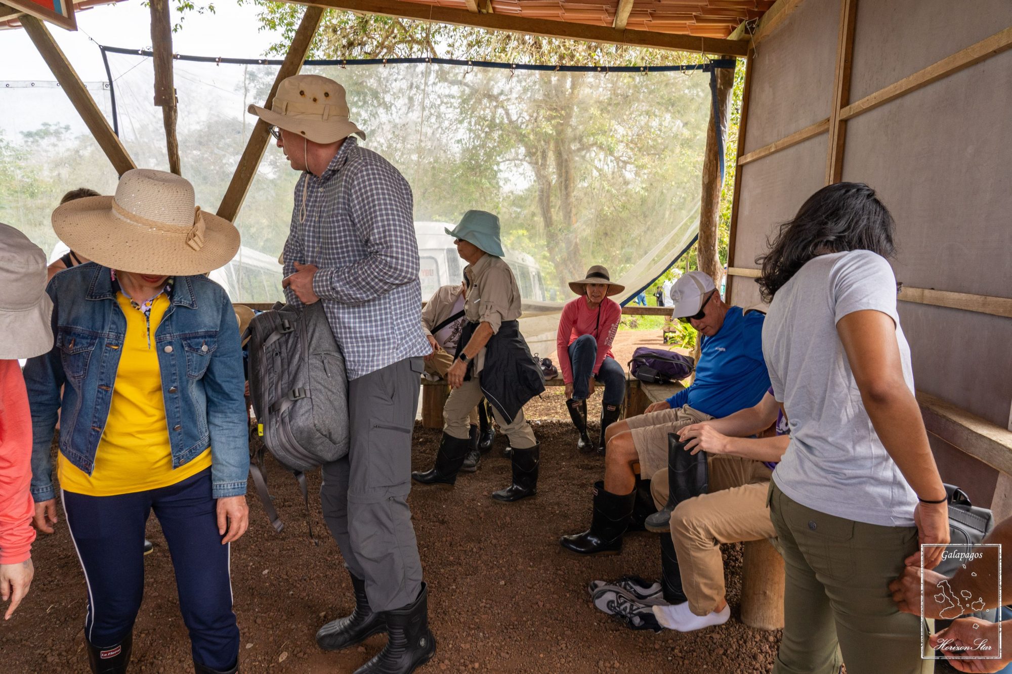 吃饱饭,大家再次出来换靴子,进去参观大乌龟。