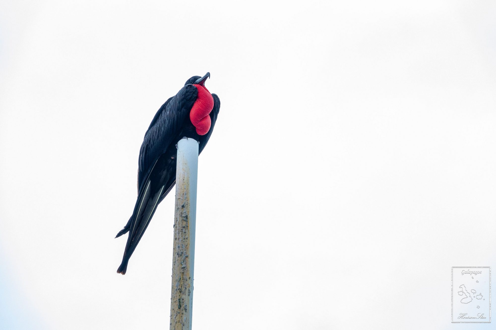 码头的旗杆上竟然坐着一只红脖子军舰鸟,来迟了错过求偶期的一众船友们纷纷拍照。看来老兄今年没找着对象啊。