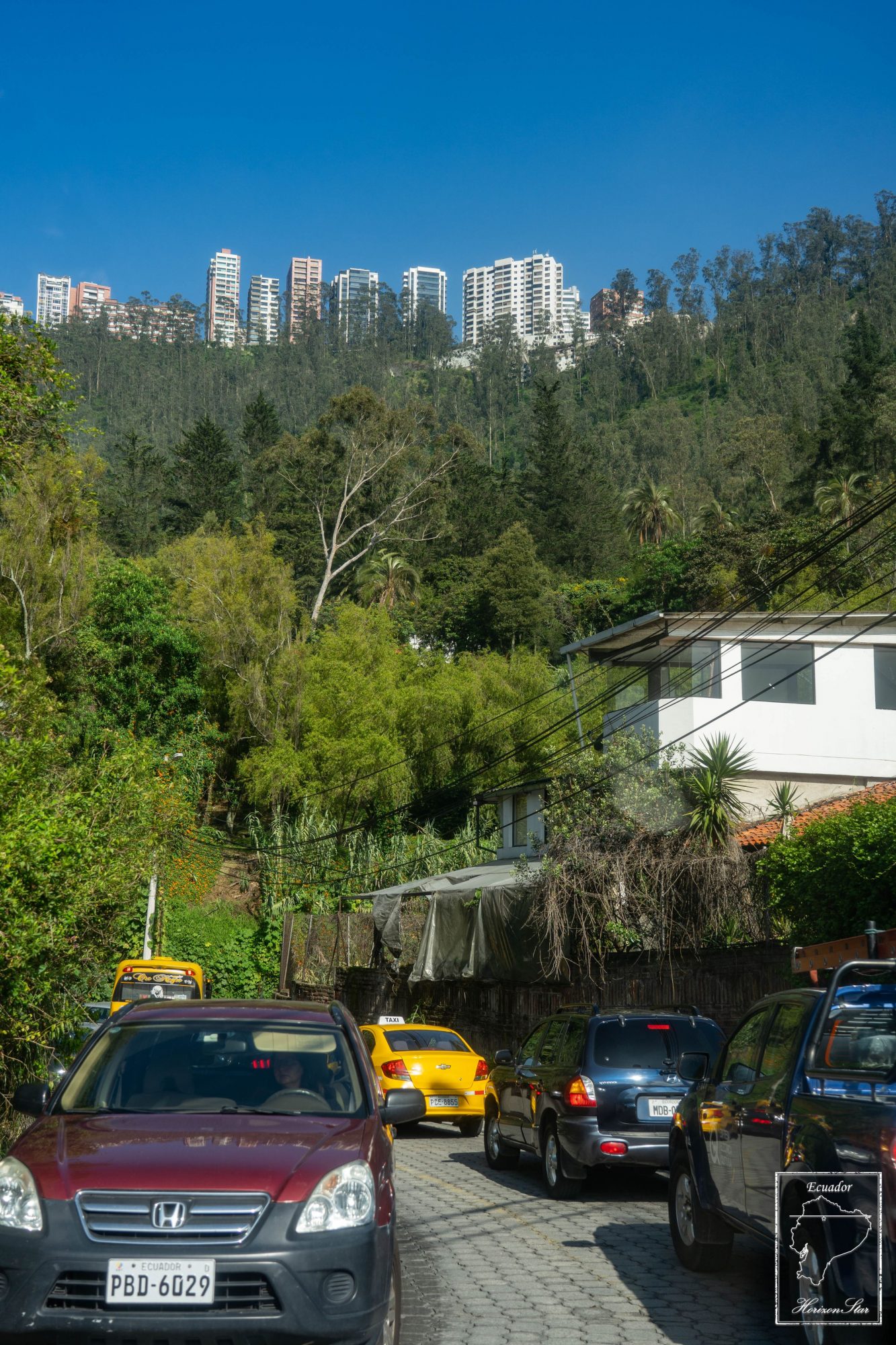 又看到云中之城的高端洋气的房子了。正好有本地人,就问问他。他说这些楼房是整个Quito最贵的了,光租金每个月就要800-1000多美元。厄瓜多尔的贫富差距也真是大啊。大叔一感叹,Eduardo的抱怨就来了,狗日的总统啊,全在搞裙带关系啊,把国家搞得乱七八糟啊……停都停不下。大叔说你们不是民选总统吗?下届选下去不就好了?Eduardo说:等不急啦,所以游行一发起,大家就直接要去烧总统。哈,不是烧总统府,直接烧人啊?厄瓜多尔民众够血性啊。怪不得总统到现在还躲在Guayaquil不敢回来呢。
