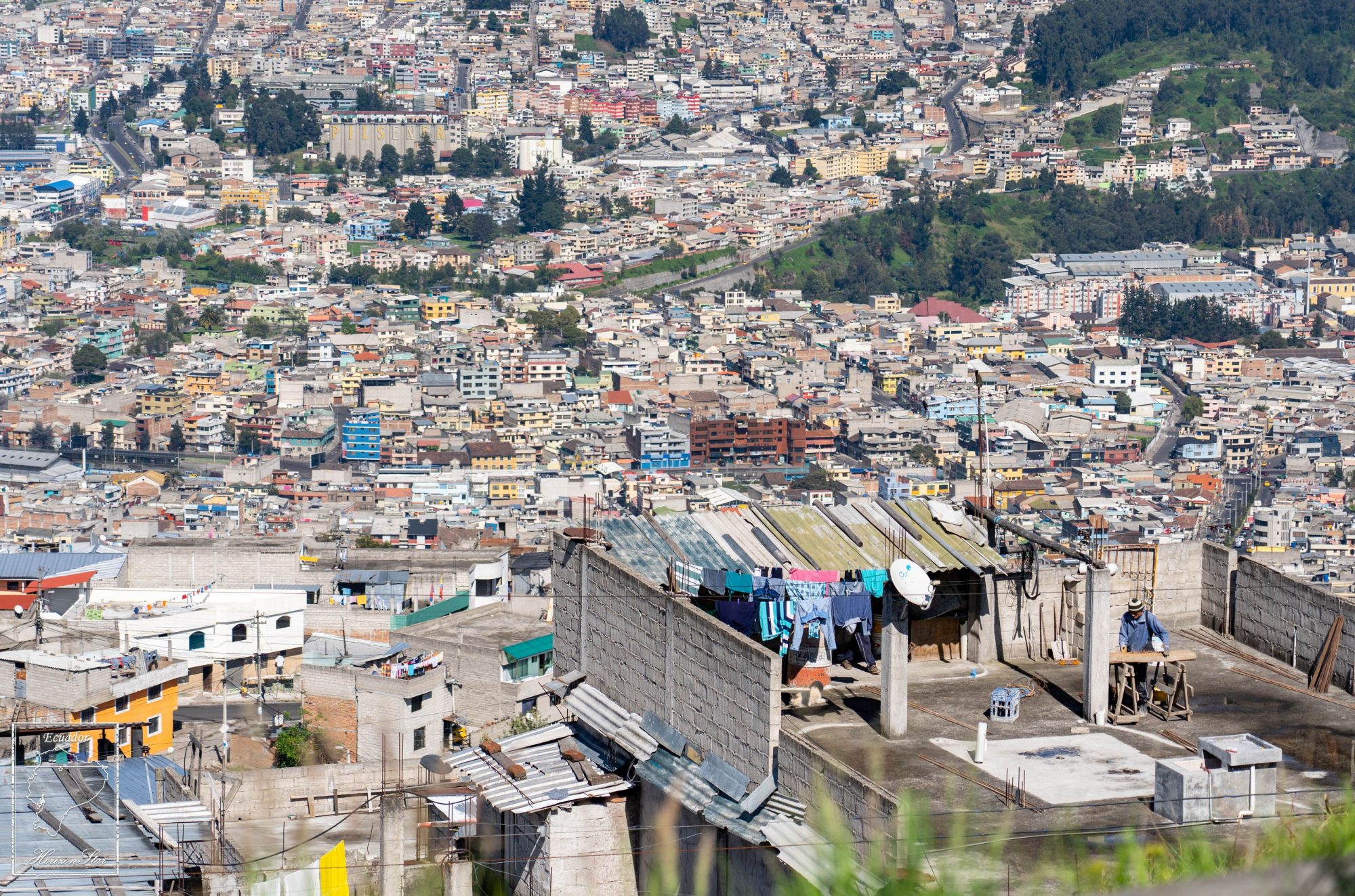 这种城市景观应该是南美独有的。密密麻麻的小房子蔓延在山头和谷地之间。每家每户都晾着很多很多衣服。不知道是基多人爱买衣服还是爱洗衣服。