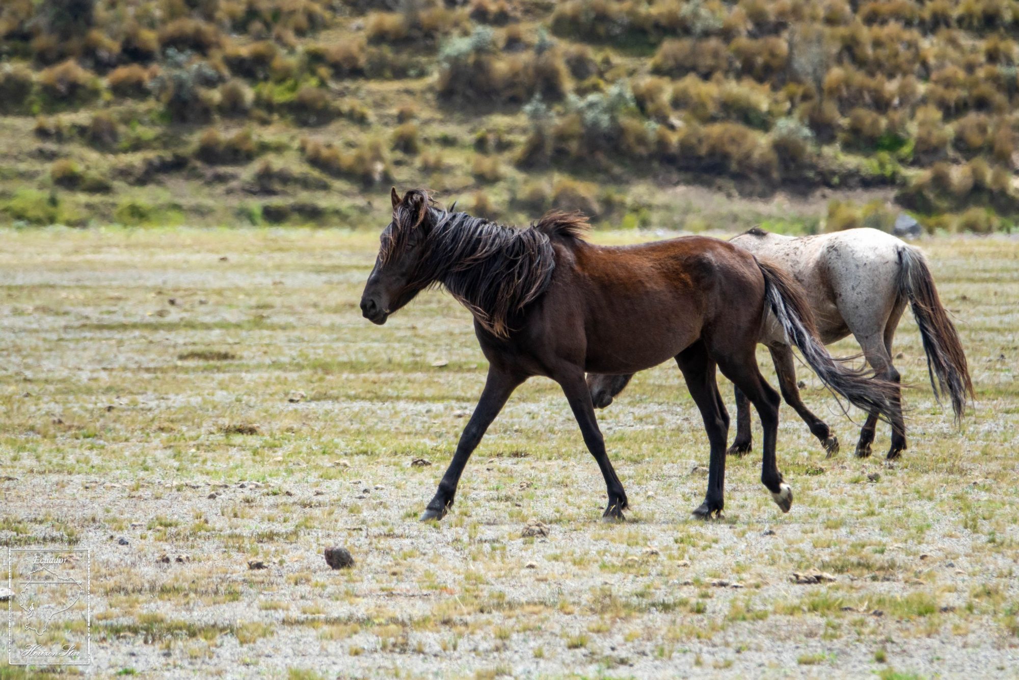 过去之前,顺路到湖边看一下。几只野马在吃草。