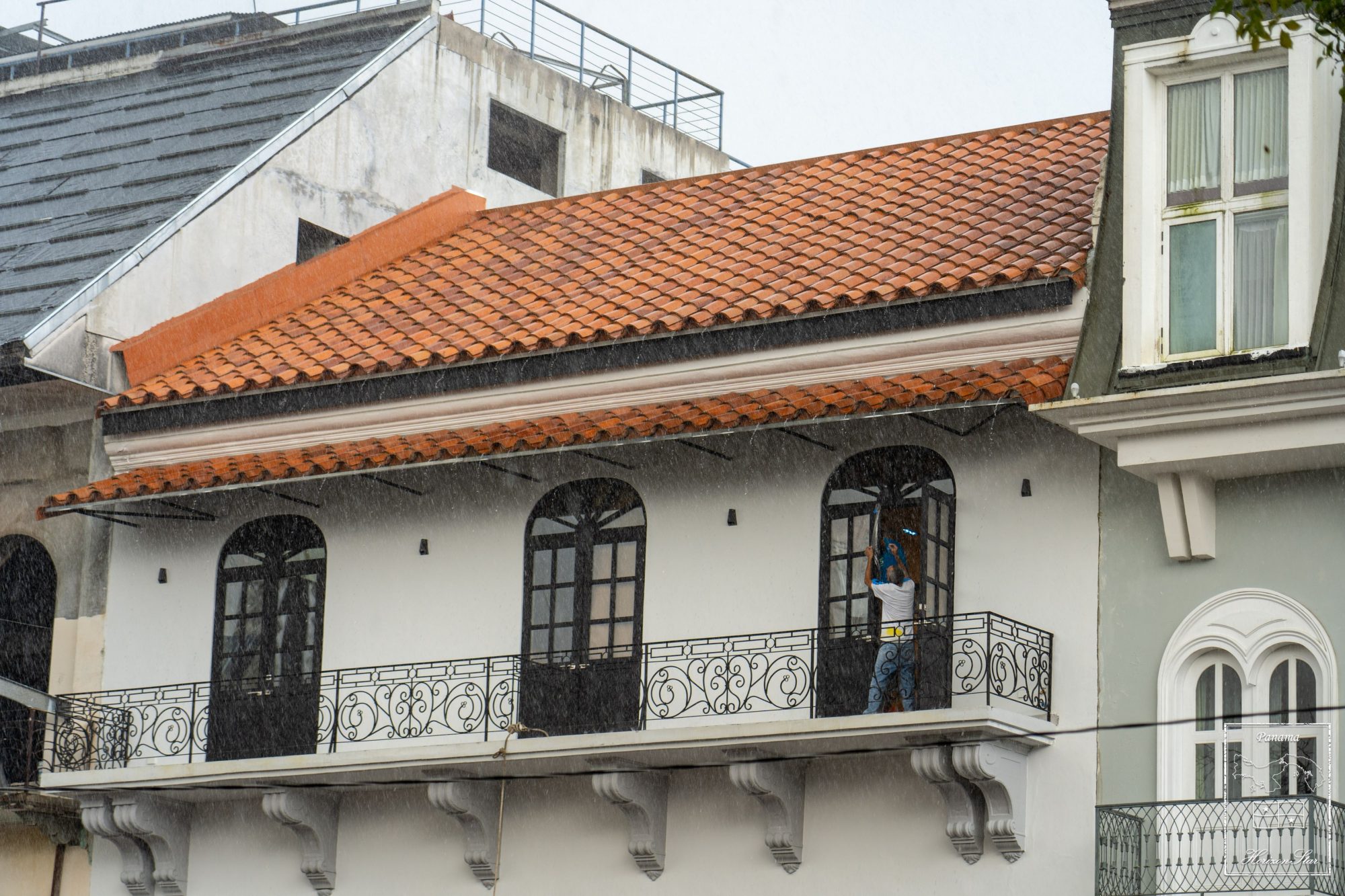 正在拍着,雨就突然倒下来。