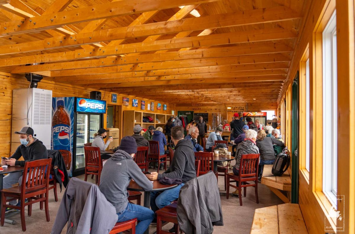 终于在蓝色的天空中,结束了Western Brook Pond游览。回停车场前,先买杯咖啡,温暖一下冻成冰棍的身体。